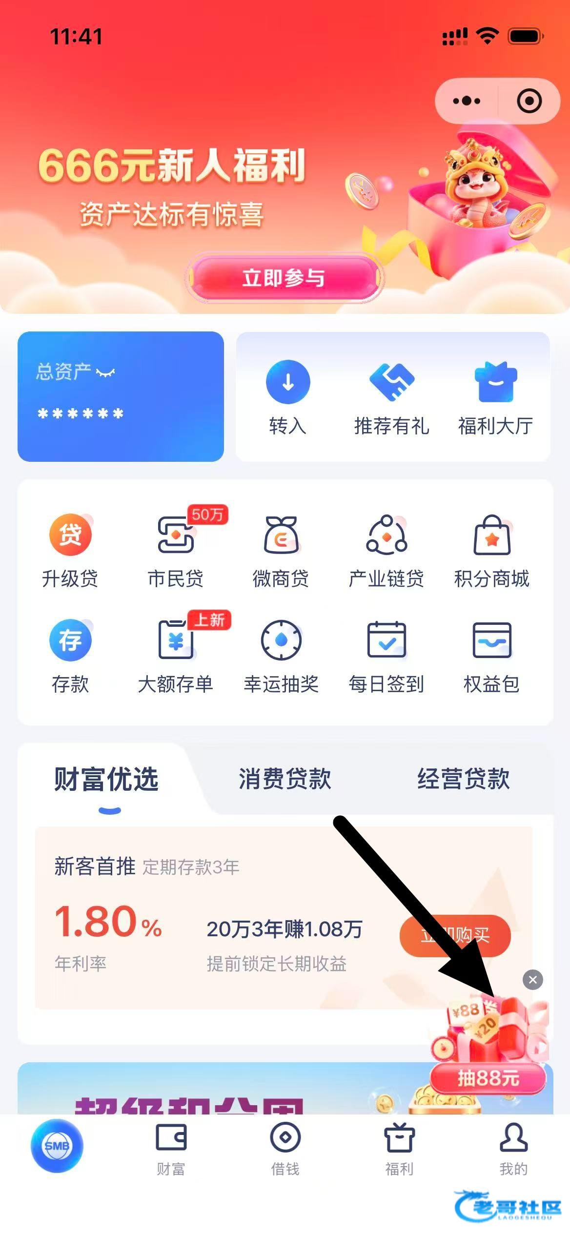 扫码开的电子三类银行卡,开完退出去在小程序重新进去右下角抽88里,抽完要下载app才可以领取,推荐码不用填,这个图不是我的做任务看到的,建议的不做