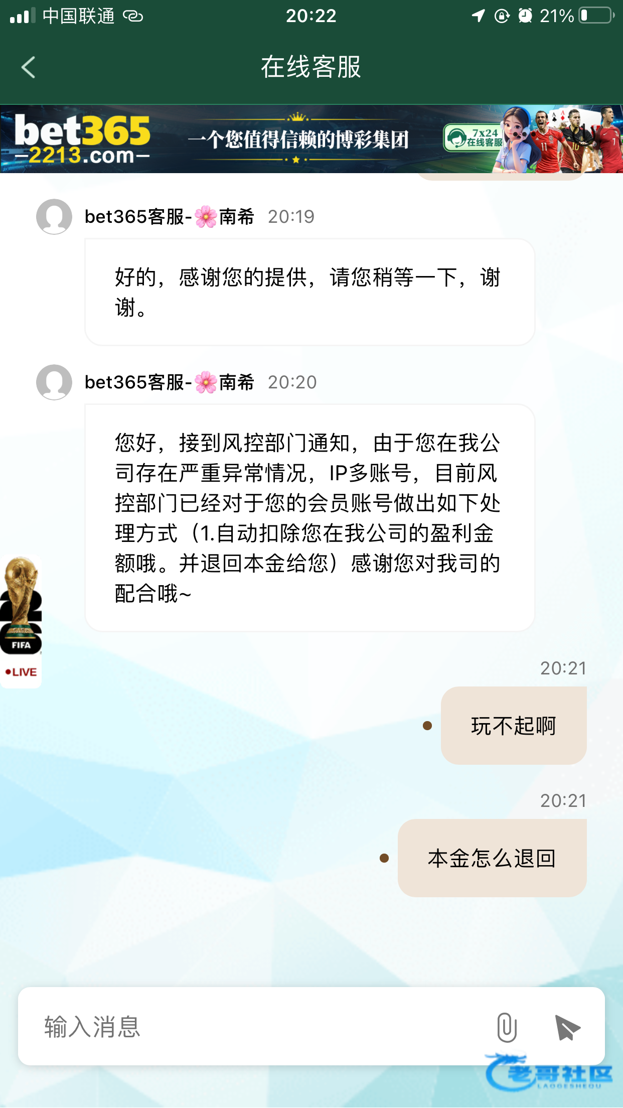 下午打电话过来的 说什么送88 然后让我充值100到账288 100+100+88我没理,我找贴发现有自助彩金,领了28打到200看了下铁冲10充了打到300多了,没想到还是被黑了,难受10