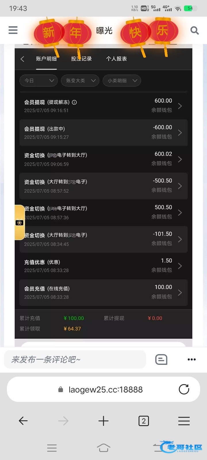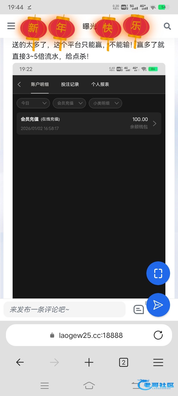約 ▶ 中不了奖什么原因? 就没见过他这逼样的,一而再再而三都是这样子。意思就是充值玩。只能输不能赢。你赢一点就给你弄个提现退回叫你打三五倍流水。打流水的时候就给你点杀,不管你开0.2 10块一转,还是20块1转,都是30有25都是空的哈哈哈哈哈。就他这逼台所以说一点格局都没有。不黑你的款,就是给你点杀。懂意思不?所以说坑台。意思是你充值完赢了之后就给你退回说套利,tmd这样子搞,什么彩金都没领。哪来的套利退回叫你打个三五倍流水。别的台子哪里像他这个逼样的,要黑了直接封号了,tmd这狗日的这样子搞,直接就是耍猴啊,懂不 1月前