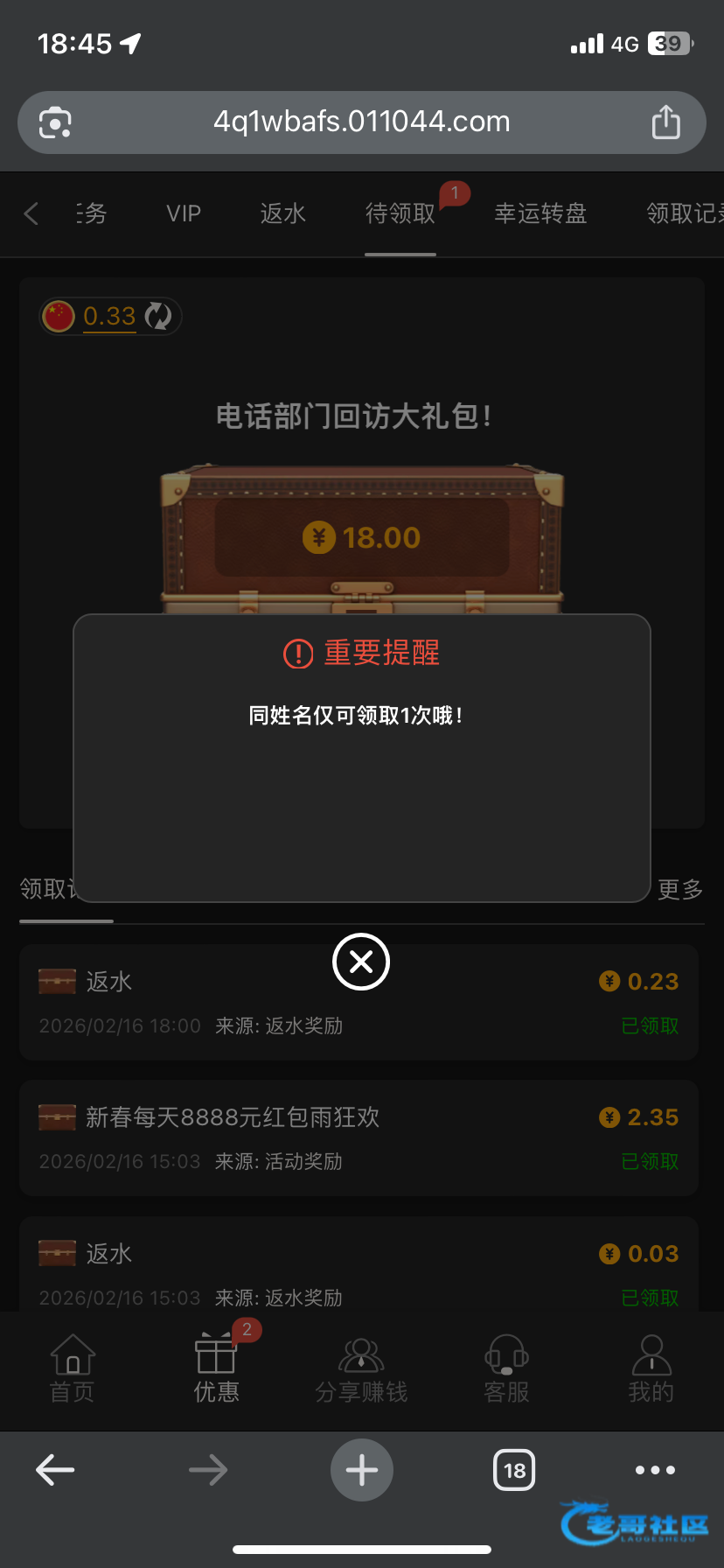 没送了 年前领个1888提了4600 这次没有 不知道是不是上次一个手机上过两个号的原因