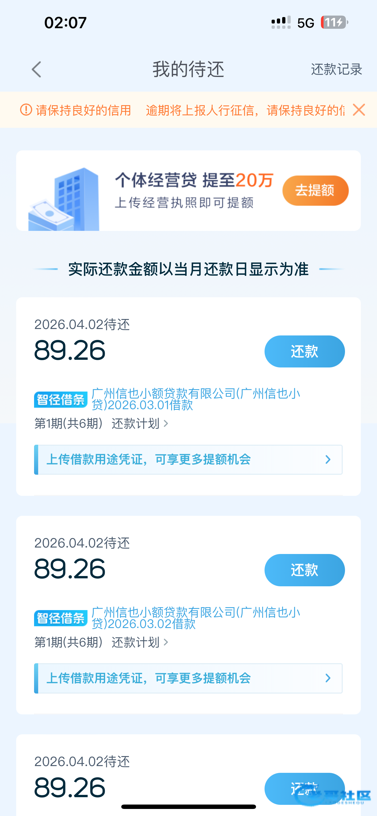 一开始不事信也突然到账了连着申请三次都到了 黑户啊
