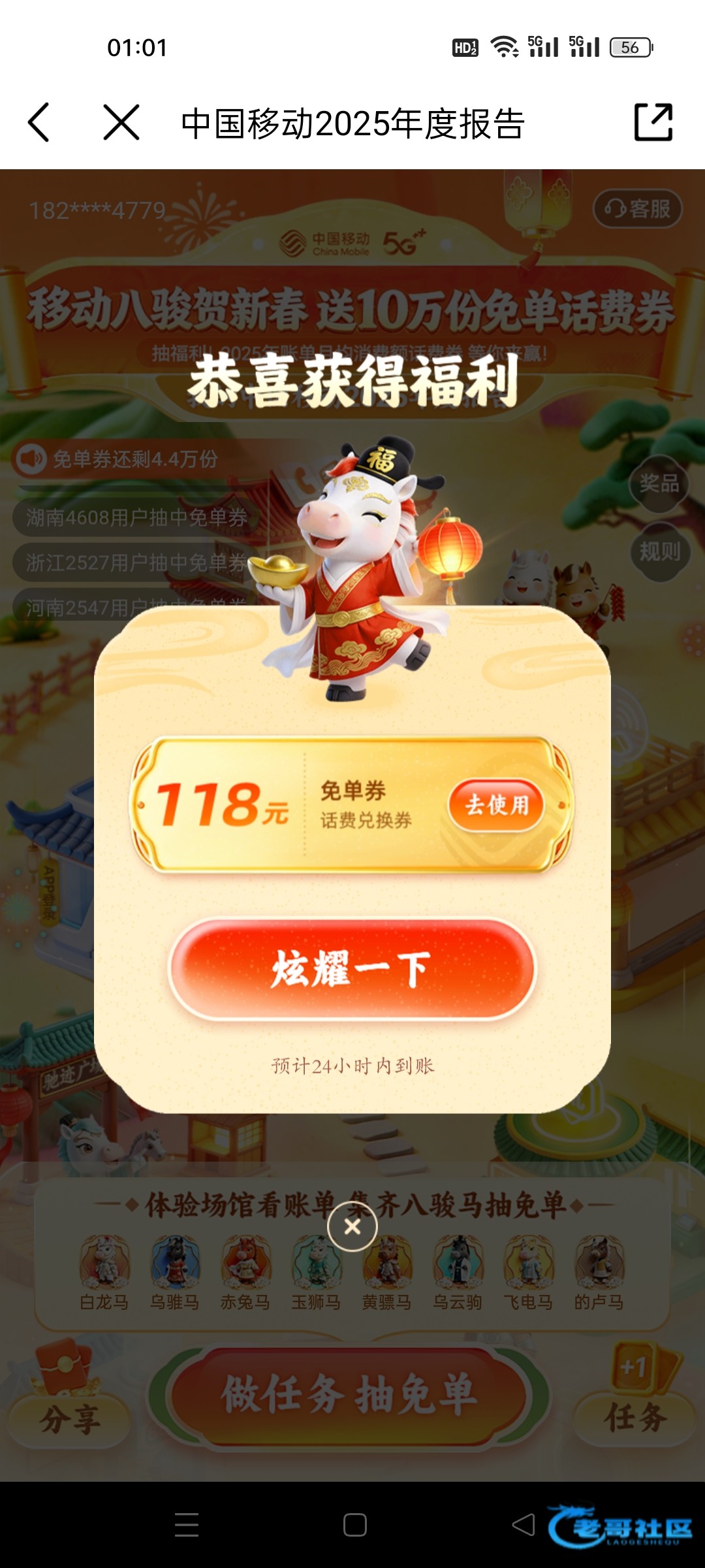 移动APP搜年度报告,有人中258,300晚上帖子发不出去,7点过看还有人中就来发了