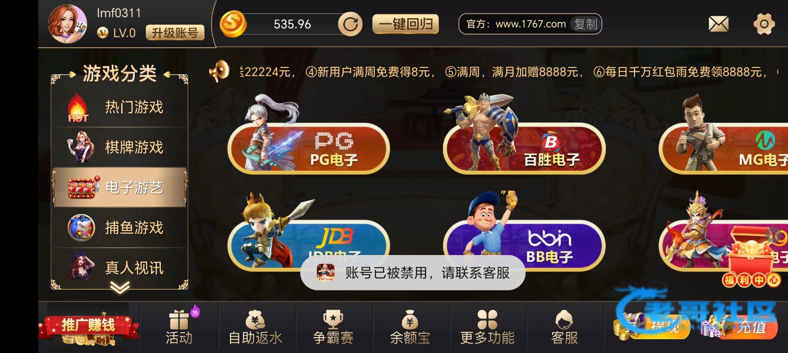 链接1767.com 注册之后绑定用户信息然后有个新人注册下载app奖励 满228出款 没打出来 谨慎充值