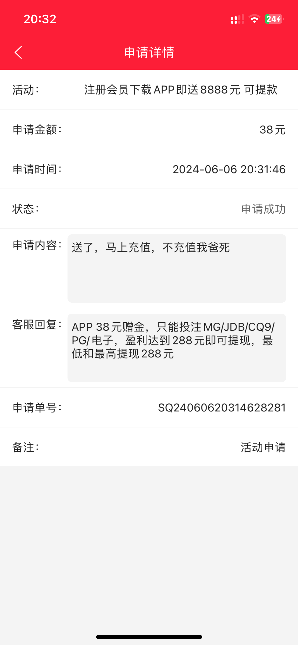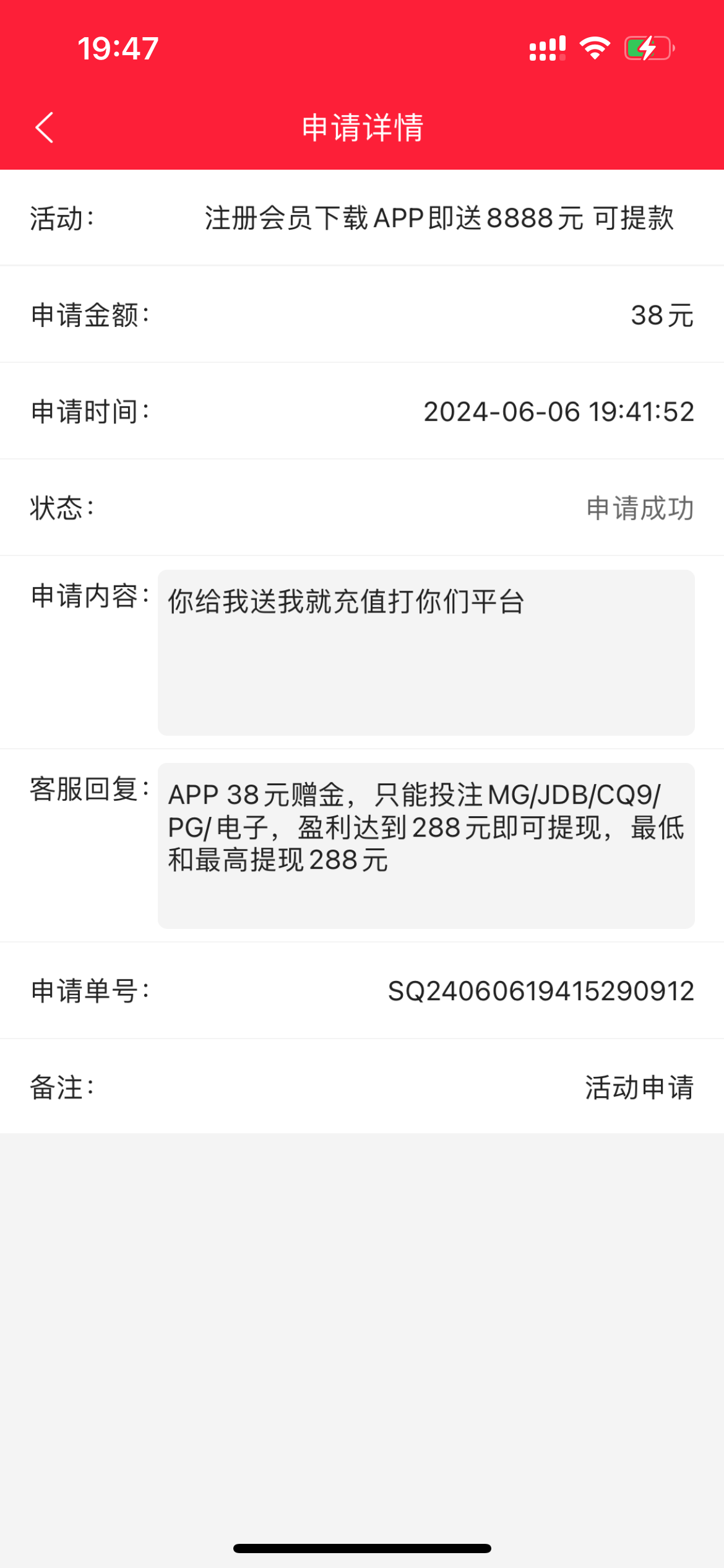 一直说我多ip我直接来了一句送了我就充值 成功提现288到账