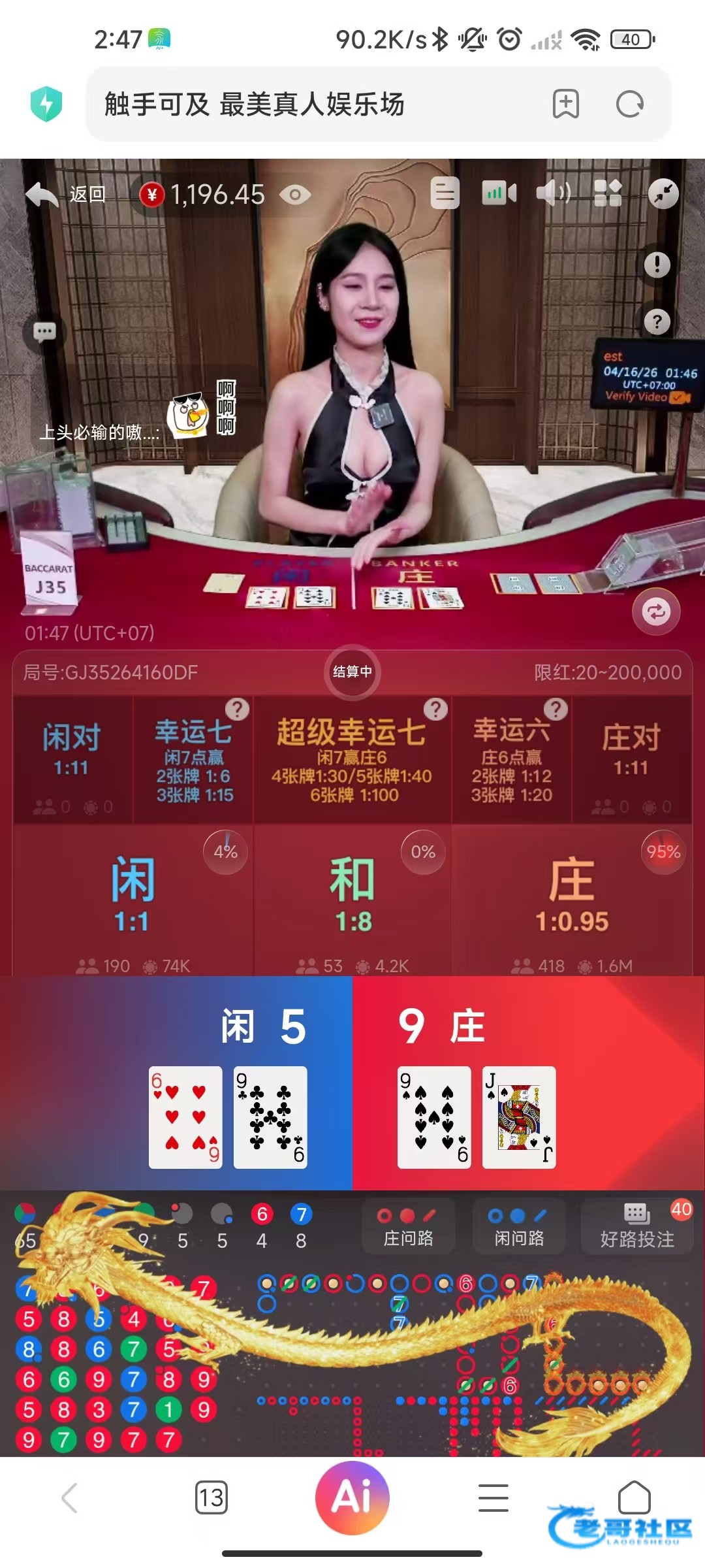 铁龙,100买了两把,后面全部都是庄9直接铁龙结束,看懵了,没敢上