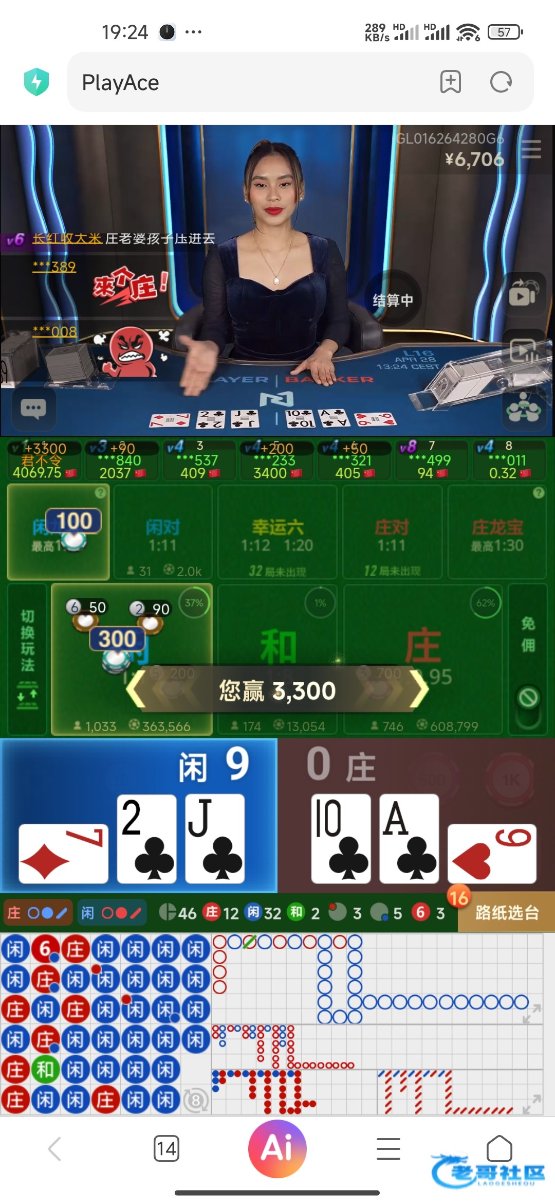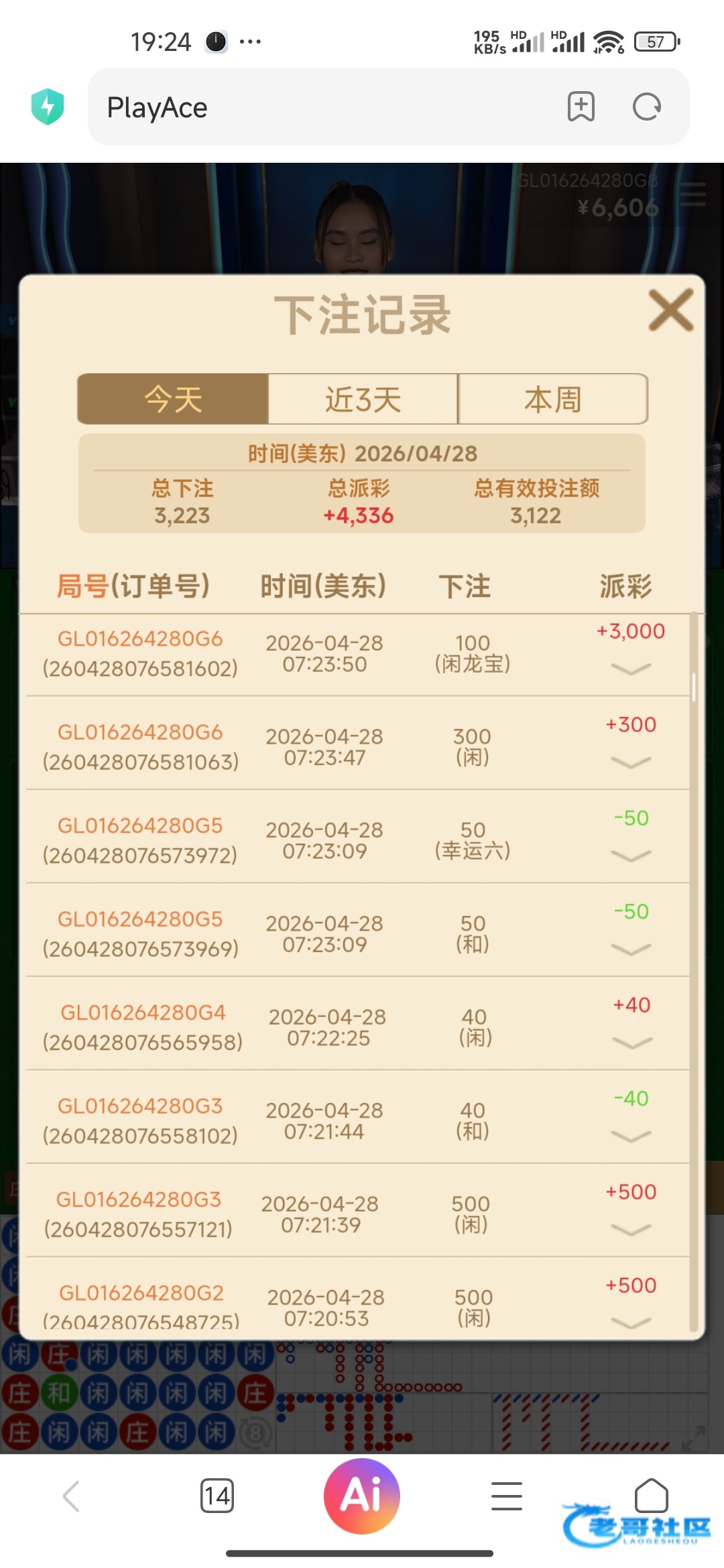 昨天5000今天4600,tmb输怂了,6龙开始想梭哈,改500居然不跟,16龙两个闲龙30倍,吃了一个,太怂了,后面一直买幸运6和,和,全部挂,然后继续买闲