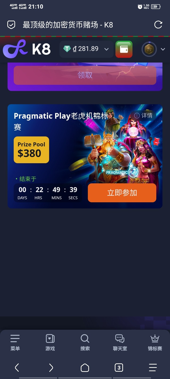 没撸到的,闲着的兄弟们,里面有个锦标赛没事可以打打上了排名有彩金