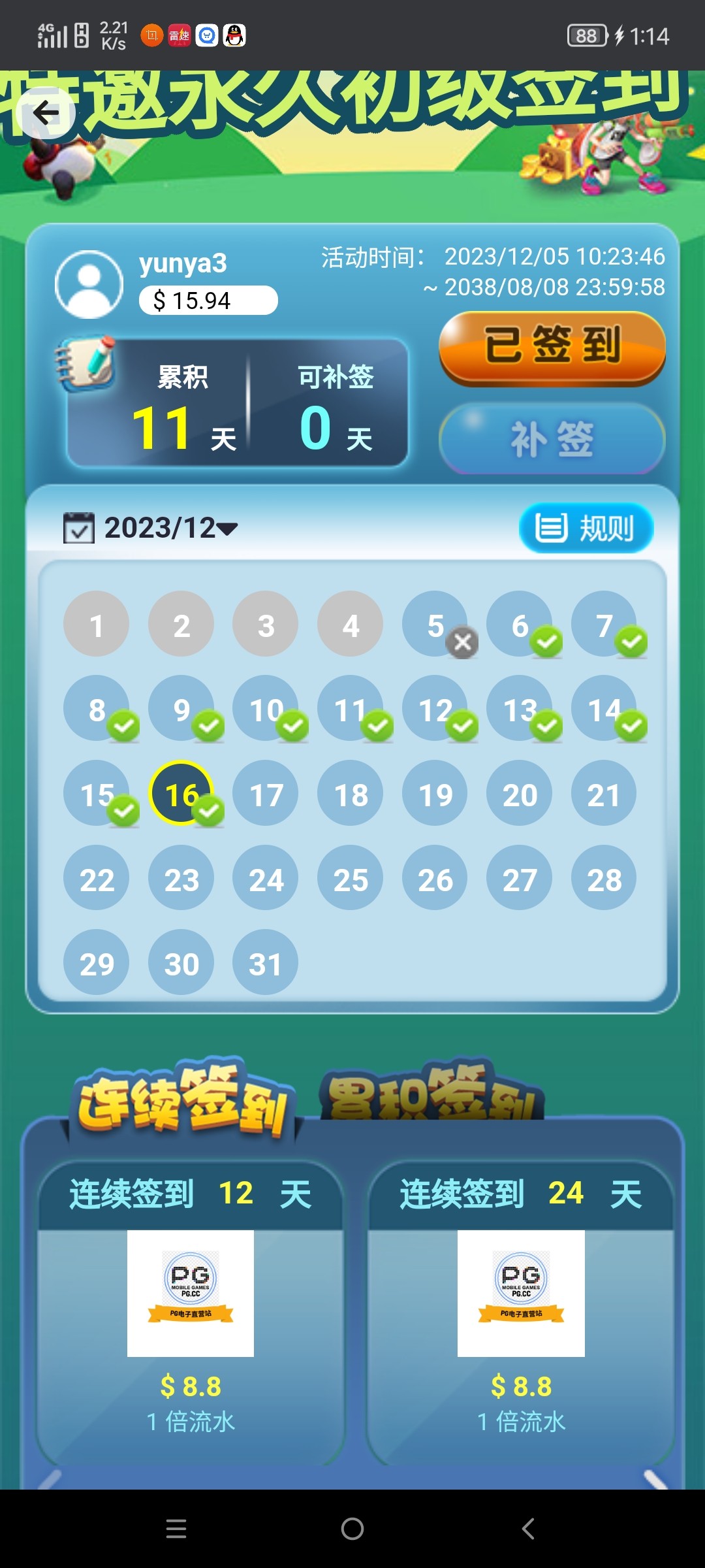 芽妹 ▶ 大牛子 我的意思就是这大部分人他有他有些打电话告诉你,或许你没有接到,你也不知道,只是提醒看一下而已,我都签到两三个月了,一分钱没充。 2023-12-16