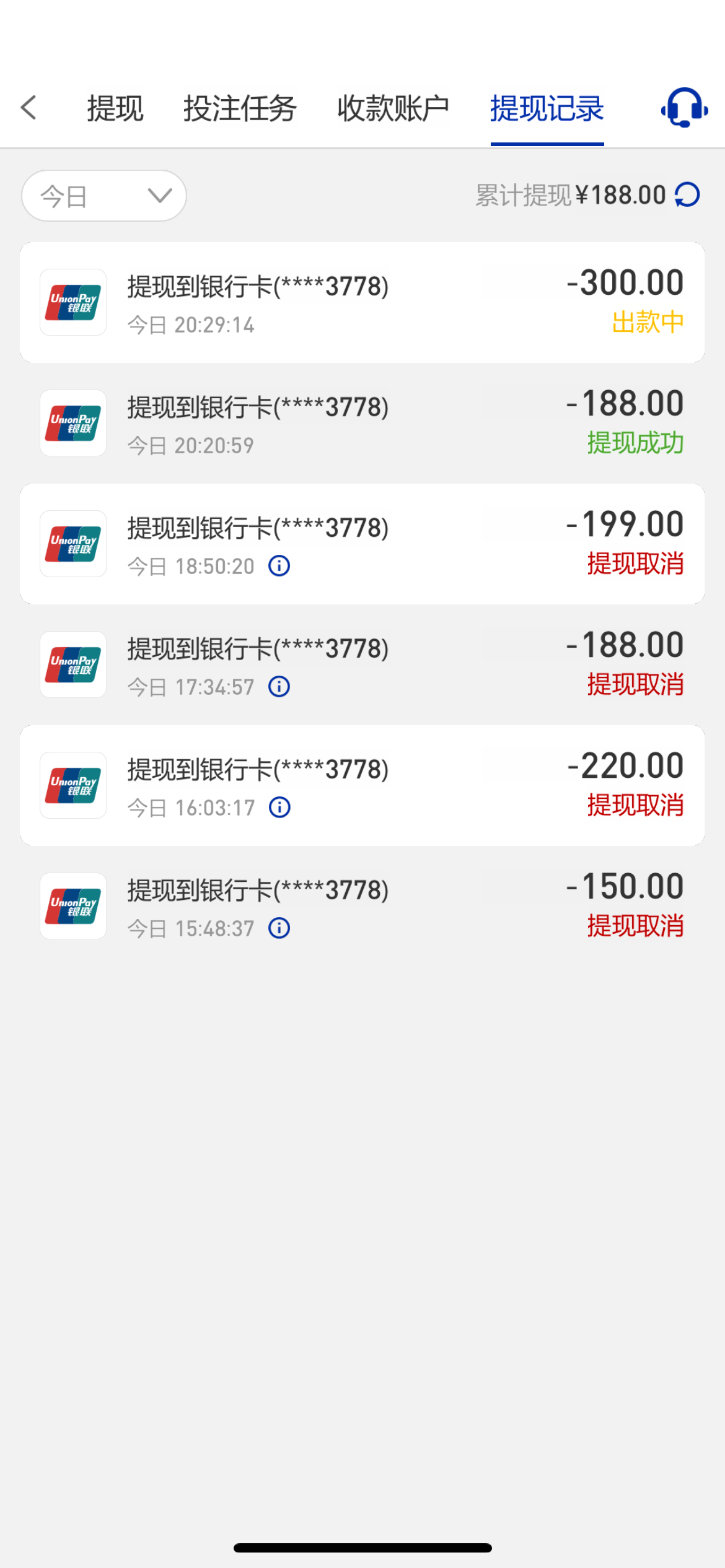 提现4次都被退回来,叫我玩wg电子十倍水,然后我就玩了一会wg电子,就去玩棋牌上到500块钱我在试一下提188结果一会就到了,还有300提现可能也到不了。