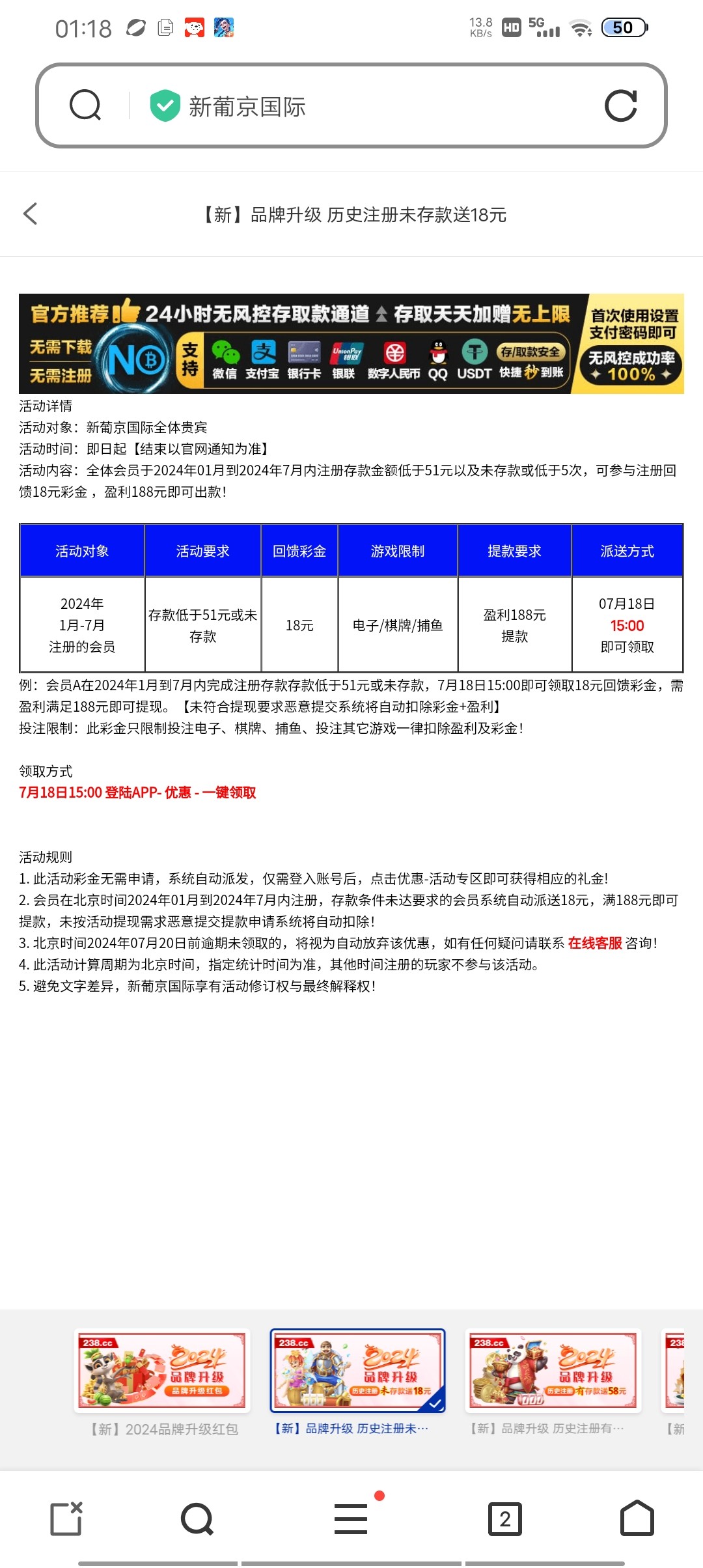 历史存款5次以上送58,还有单比充值送18+,有号的自己去看看吧