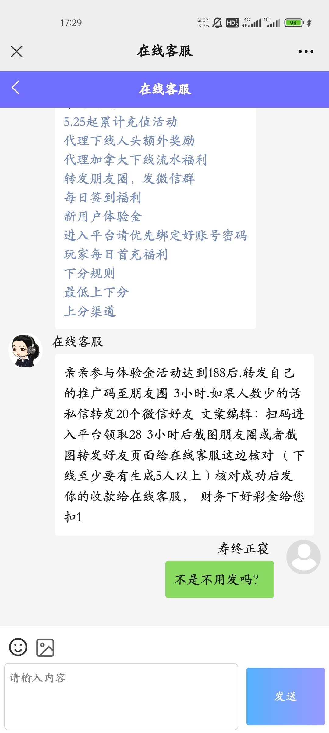 @www ,以前不用发吧,我之前玩过一段时间,有个微信客服也送过几次彩金,打多少出多少