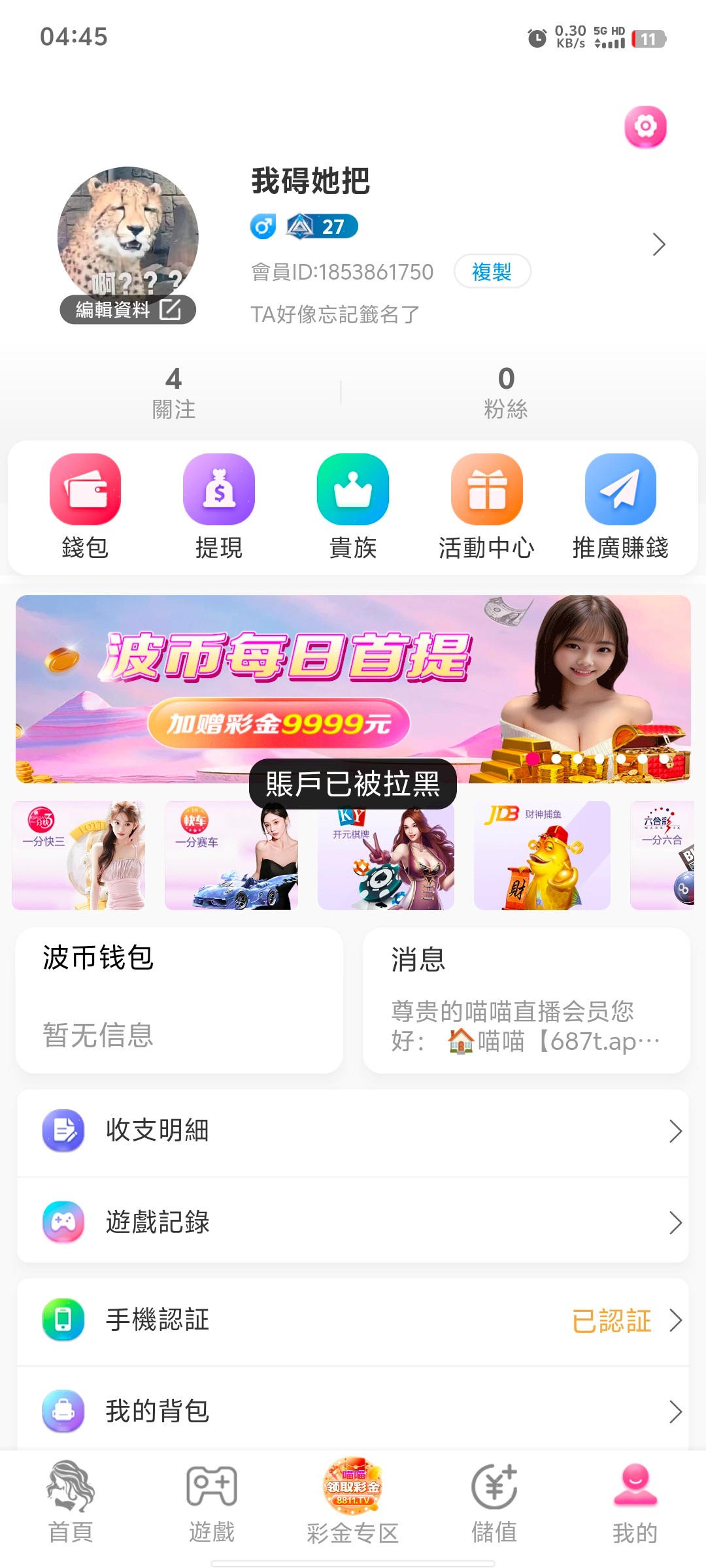 18年彩票入坑,19年红了差不多40个。然后娶了个媳妇 生了小孩之后就没玩过了 之后离婚了 然后慢慢有继续的赌回来了。去年接触电子 然后就没盈利过。妈的戒赌了 赌徒没好下场