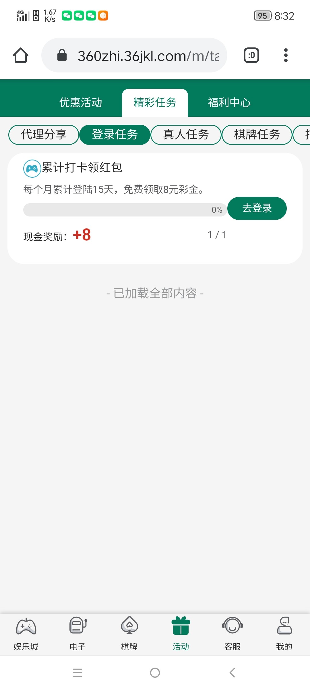 每天登录,连续15天领取8元彩金