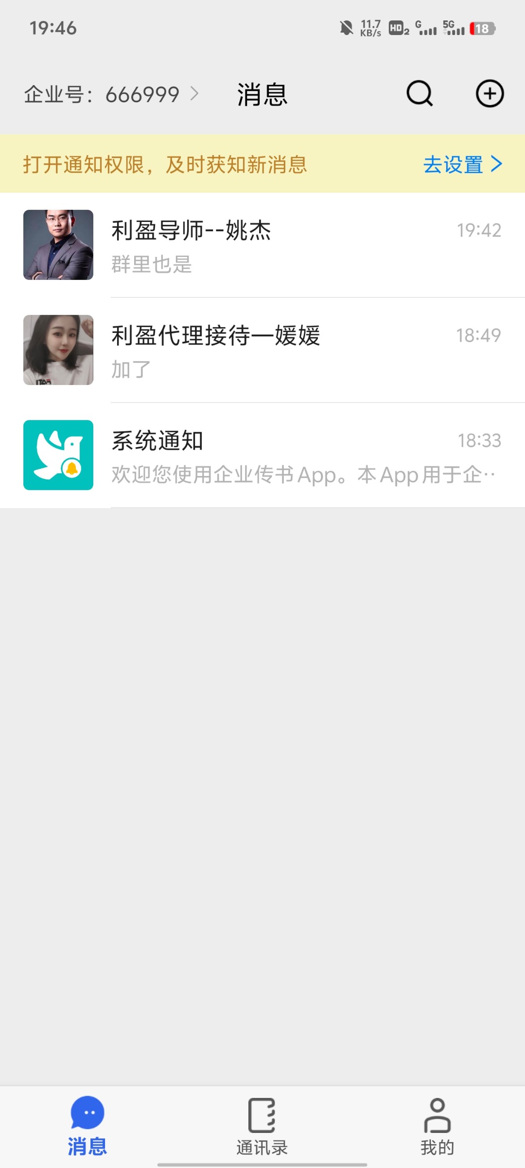 彩票杀猪盘送18,接到电话说下载企业传信送18,下载后让我加31010说有什么包赔稳赚,因为这种杀猪盘我是玩过的前期会带你赢个几百,然后我把送的18梭哈第二手没中,充值了一百提现288,兄弟们白嫖即可禁止充值,企业号666999试试能不能碰到