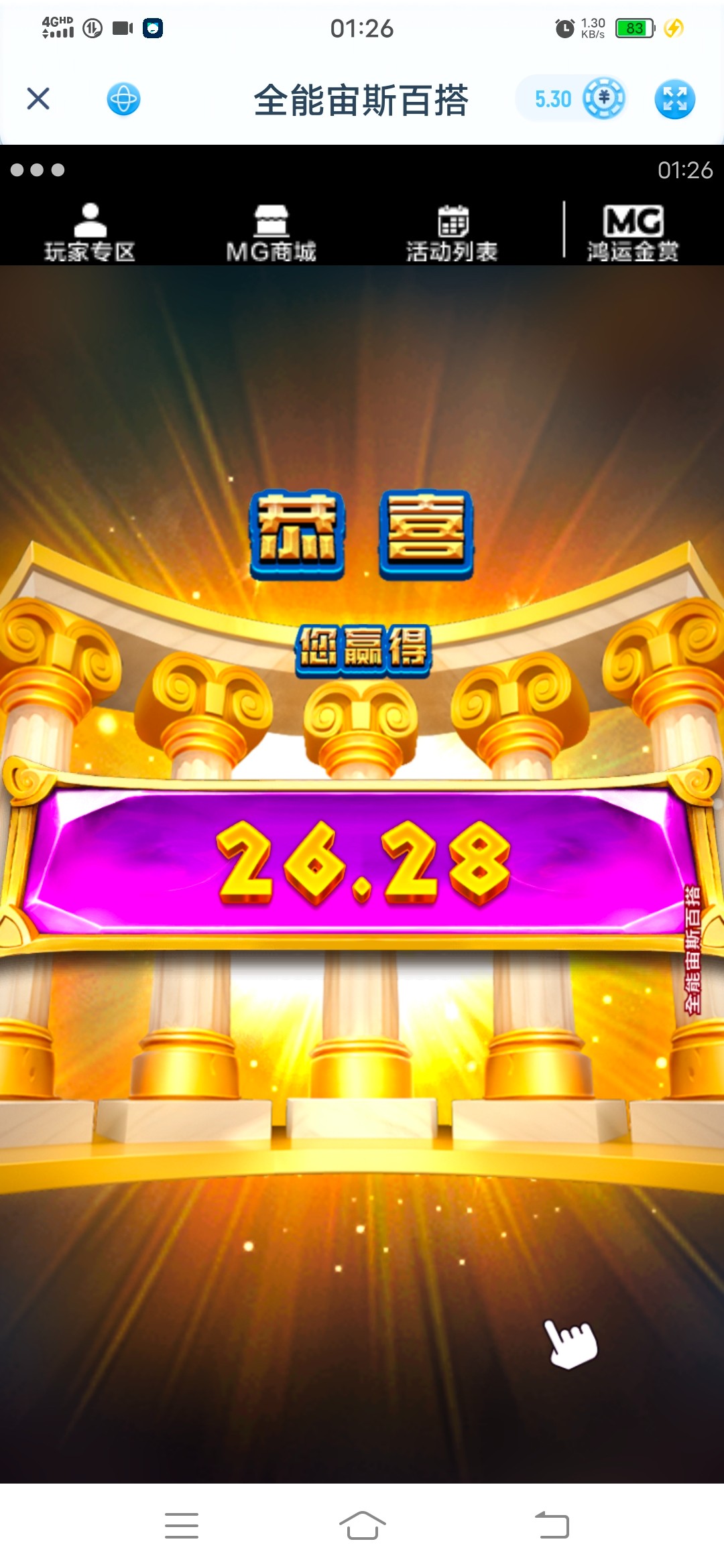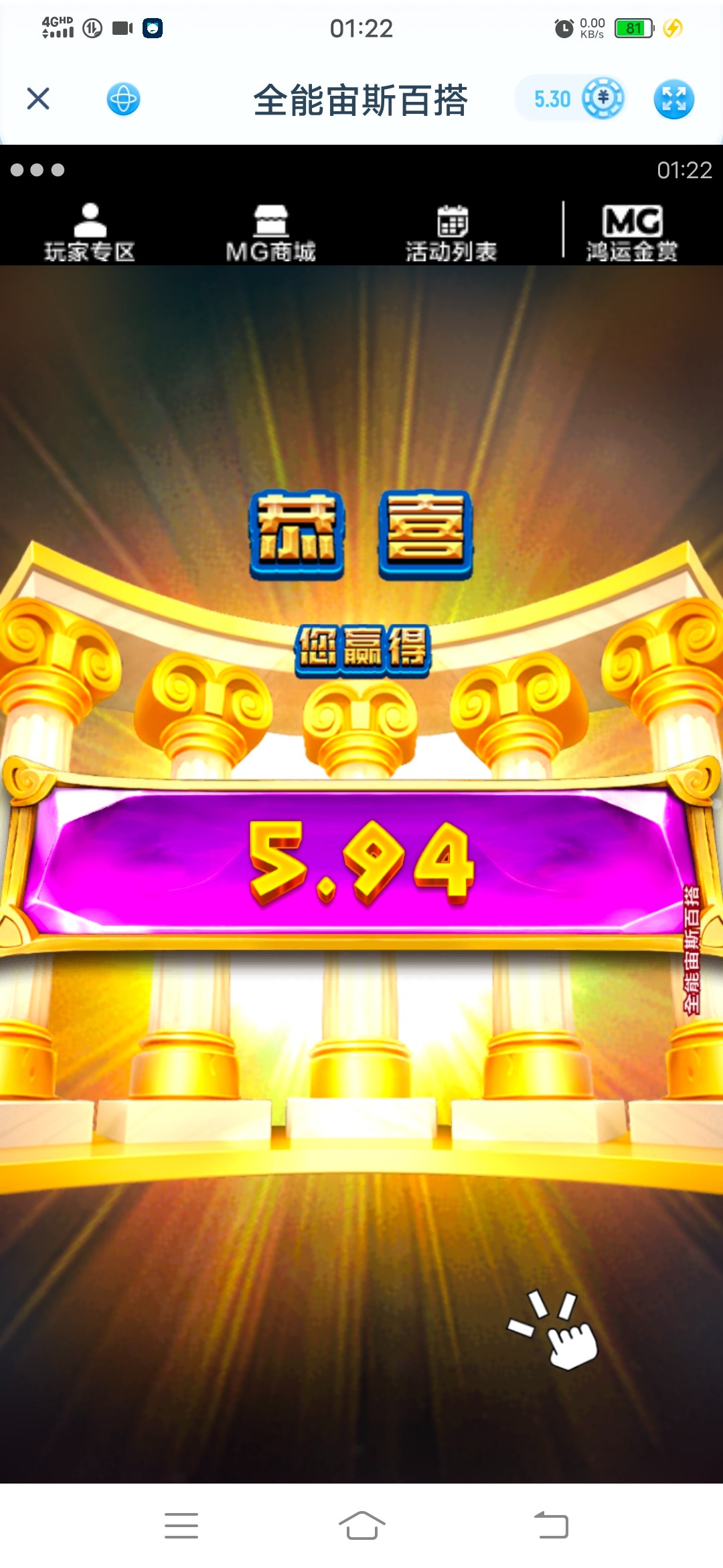 刚刚试了星空电子里面儿赢了几十块钱儿 ,好想转运呐,老铁 @再来玩 ,