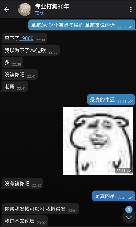 老哥:付对话记录截图:恭喜这位兄弟,牛逼就完了!