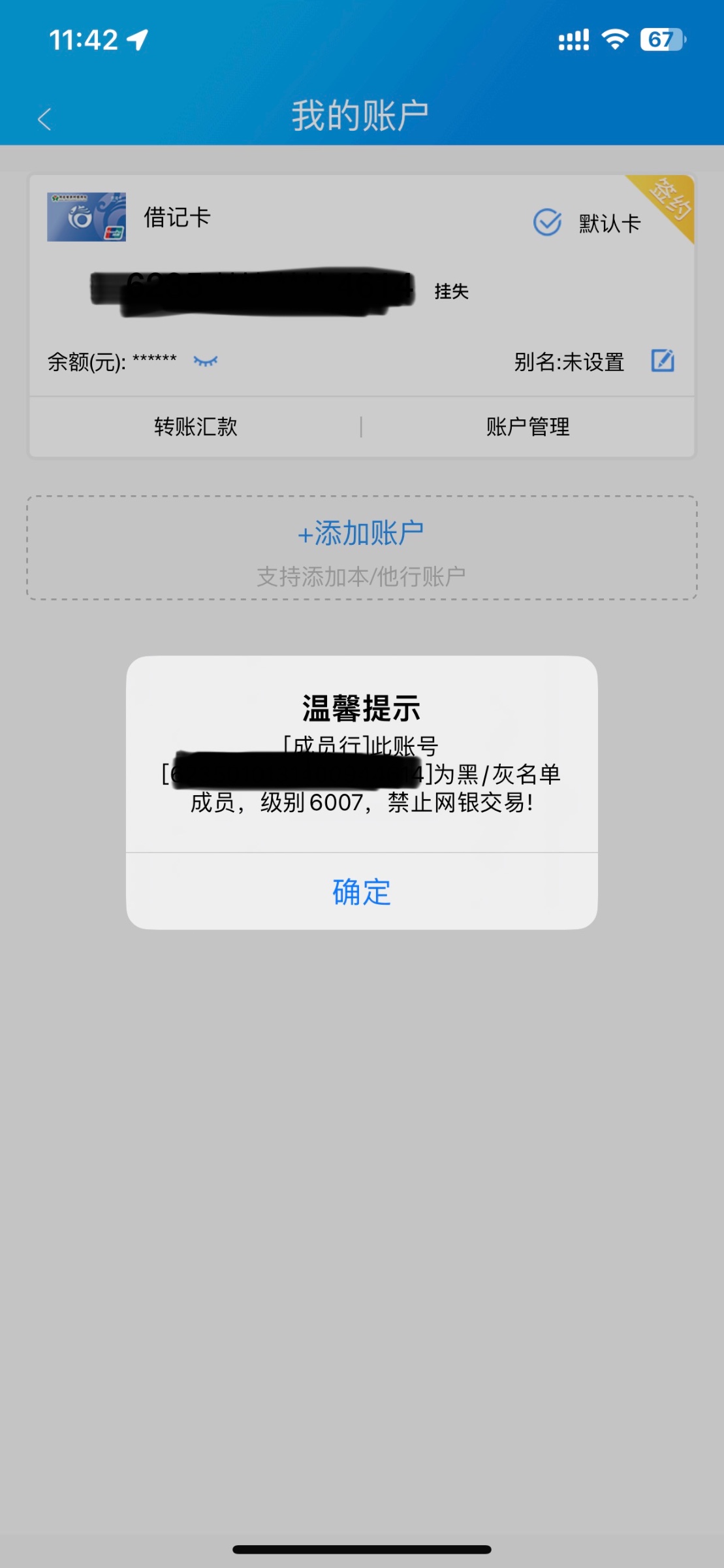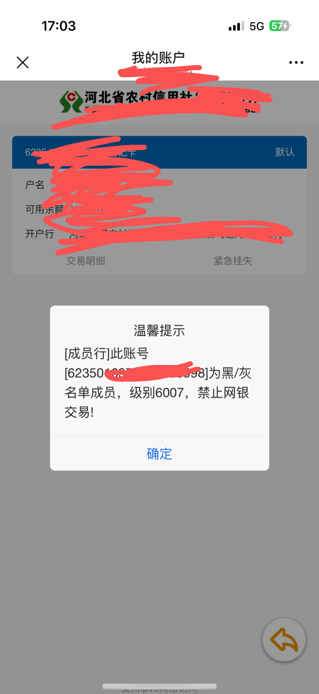 风控跟黑名单不一样的。打电话问柜台吧。如果里面有钱,问下柜台怎么处理