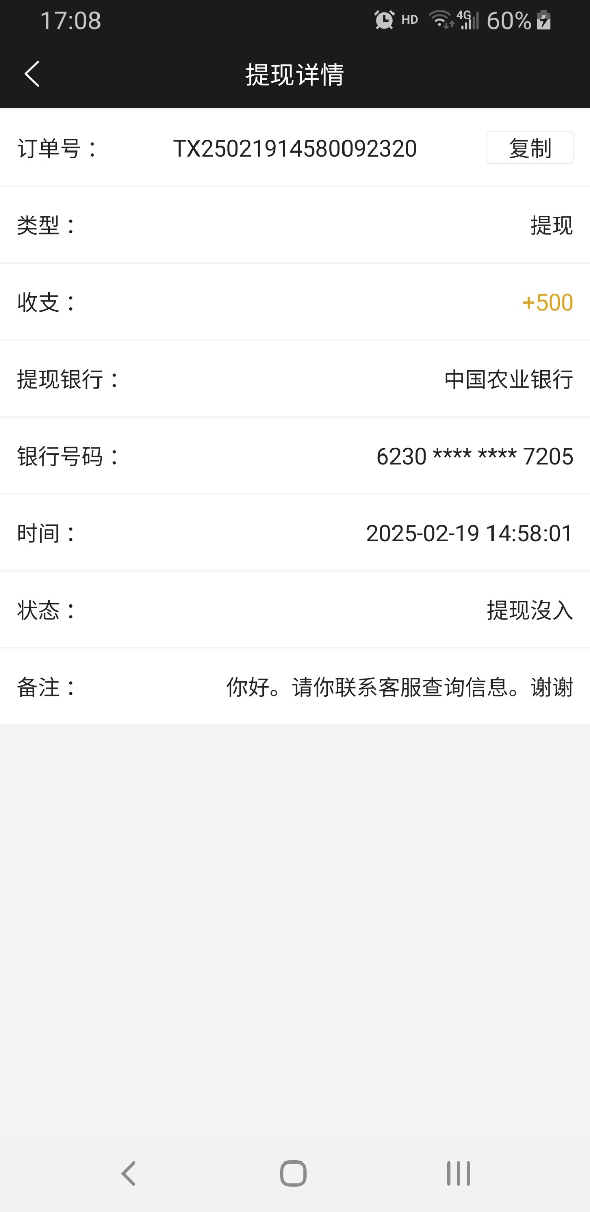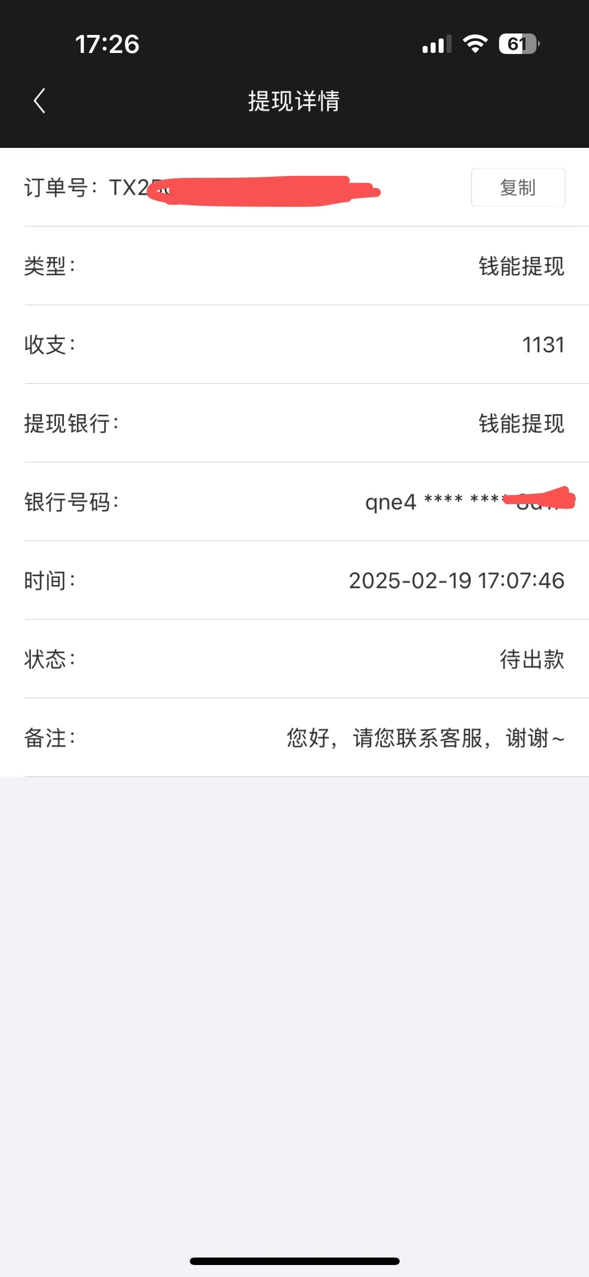 我的到了,提款多去拉两笔订单大额的,几千那种