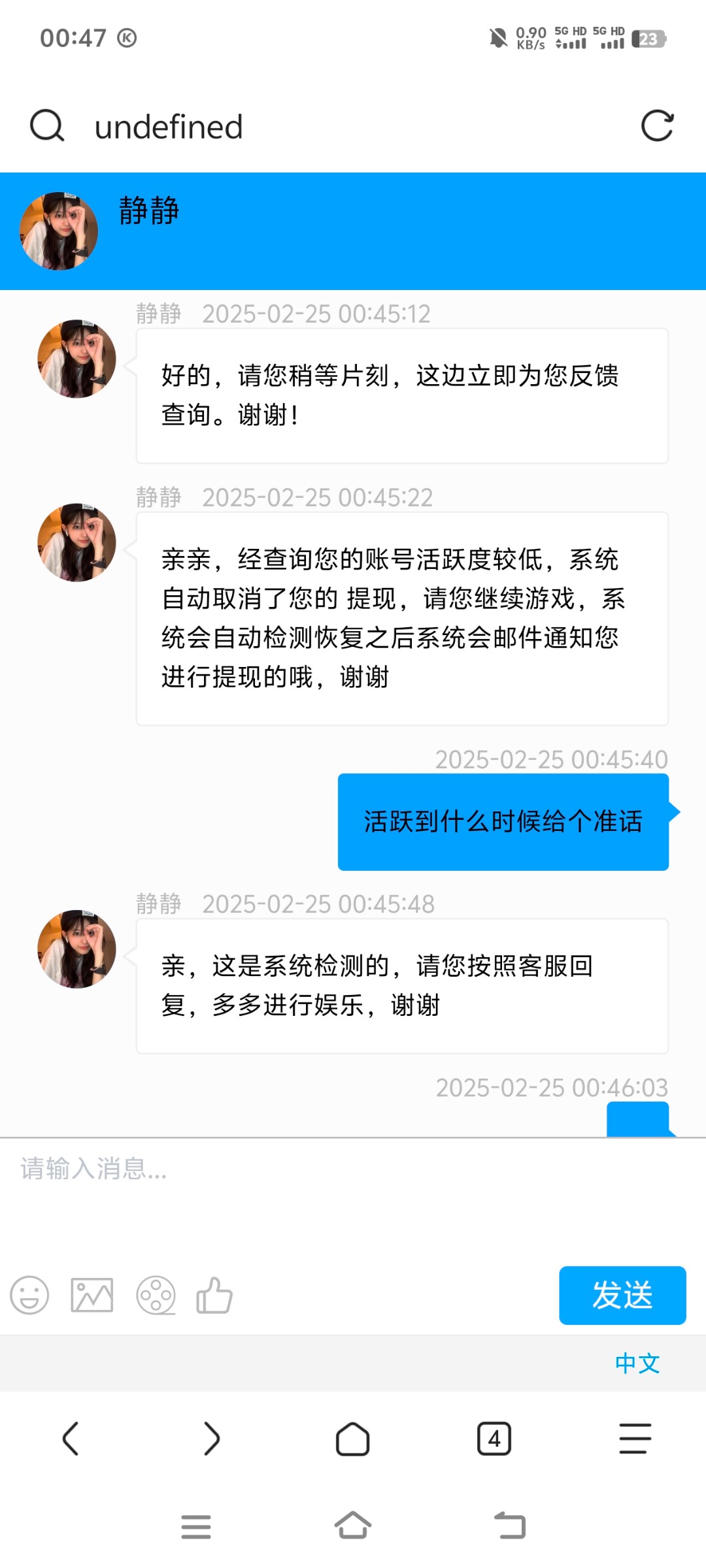 爱猫狂人 ▶ 夏林希 我不知道,反正我出款直接秒的,我都一年多没充值过了,之前玩的时候充值过万把块 2025-2-25