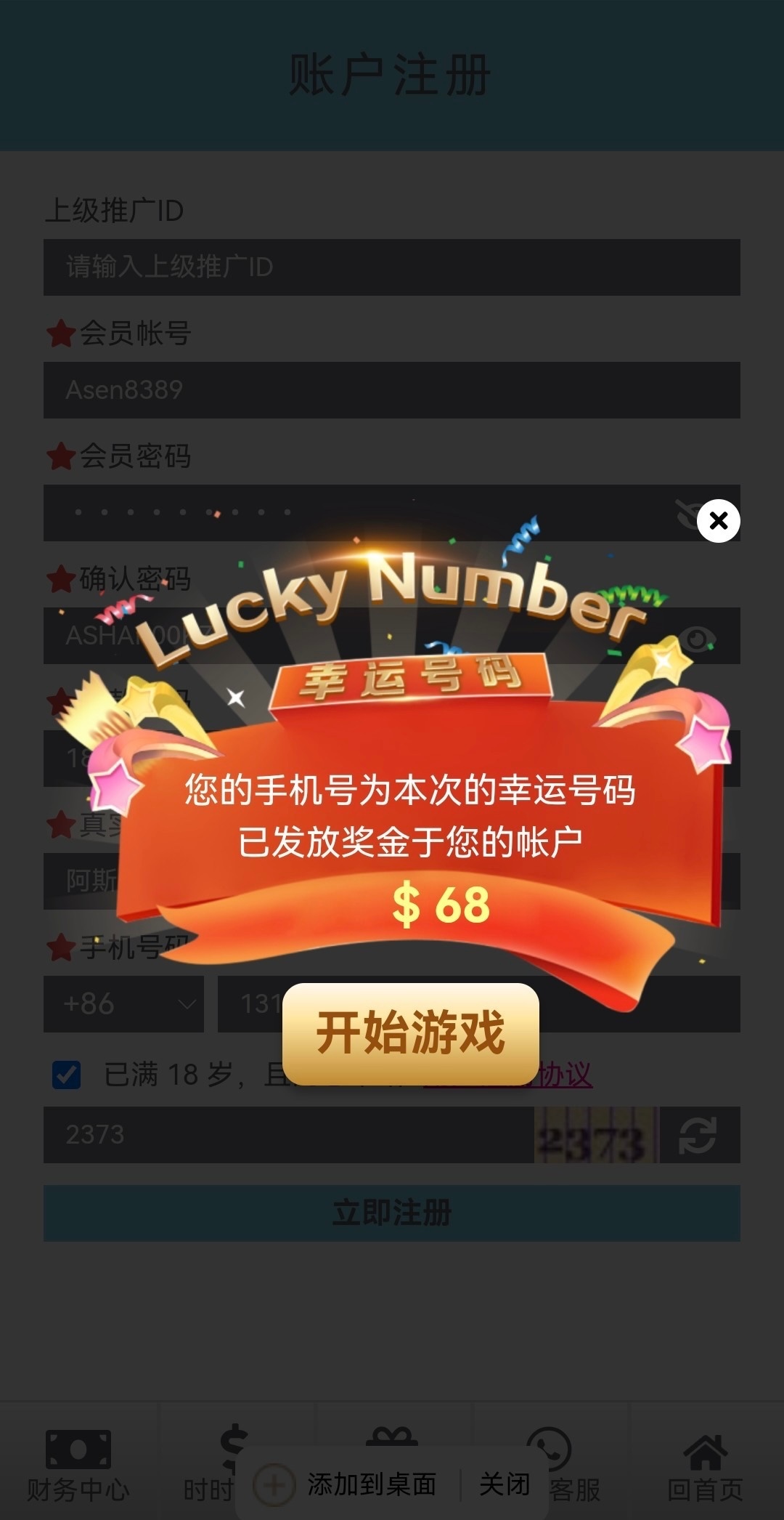 注册过 登进去送了15.88没打出来