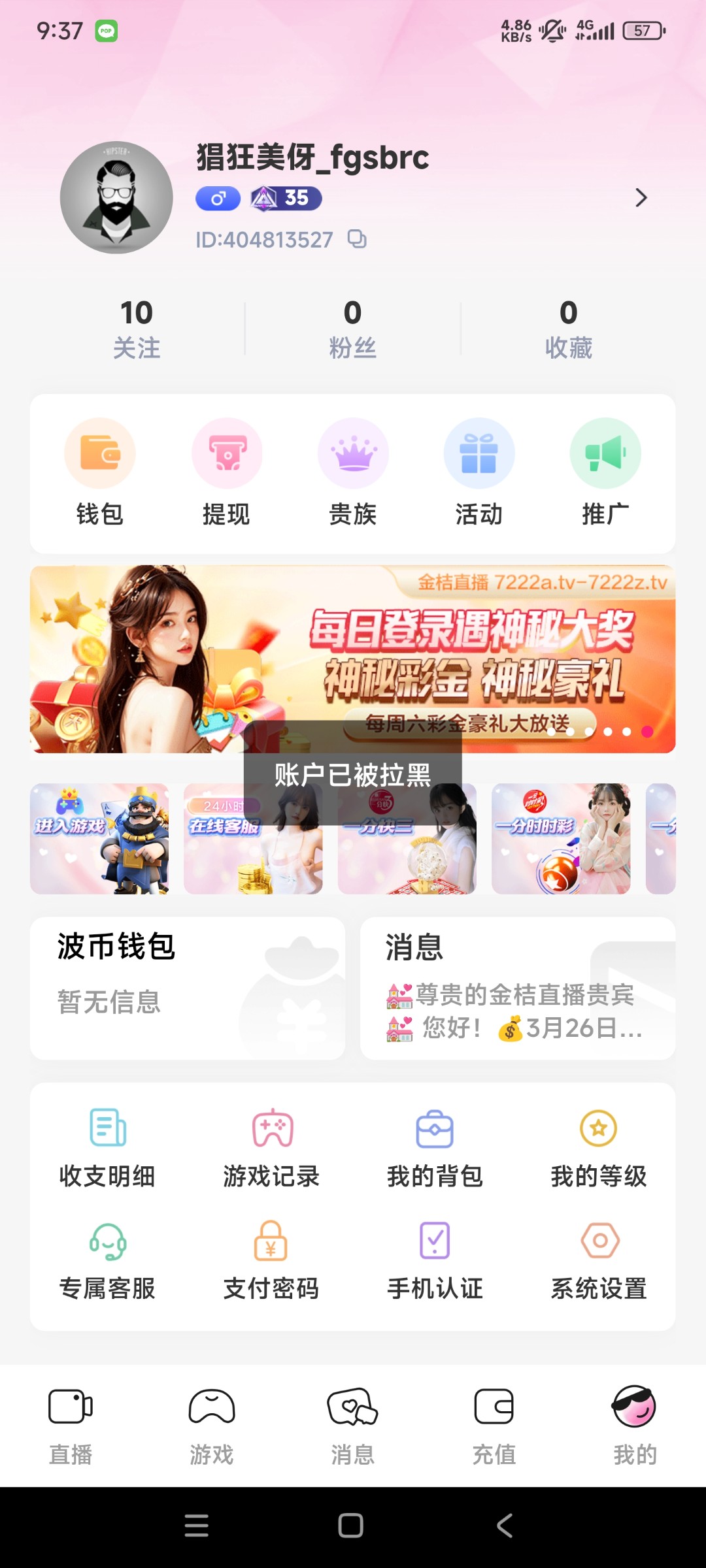 黄播。金桔直播。黑台大家注意只能输,赢一点就被拉黑大家避雷,最恶心得是一拉黑客服都进不去了恶心的很