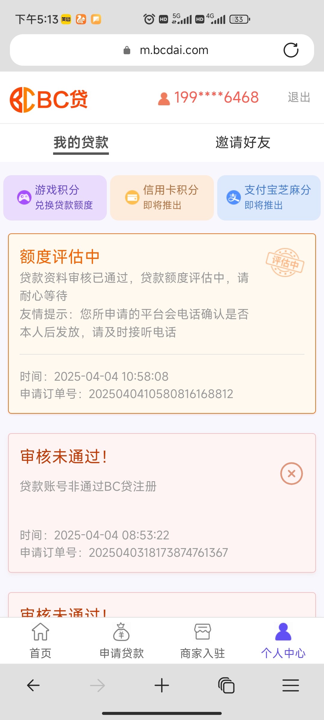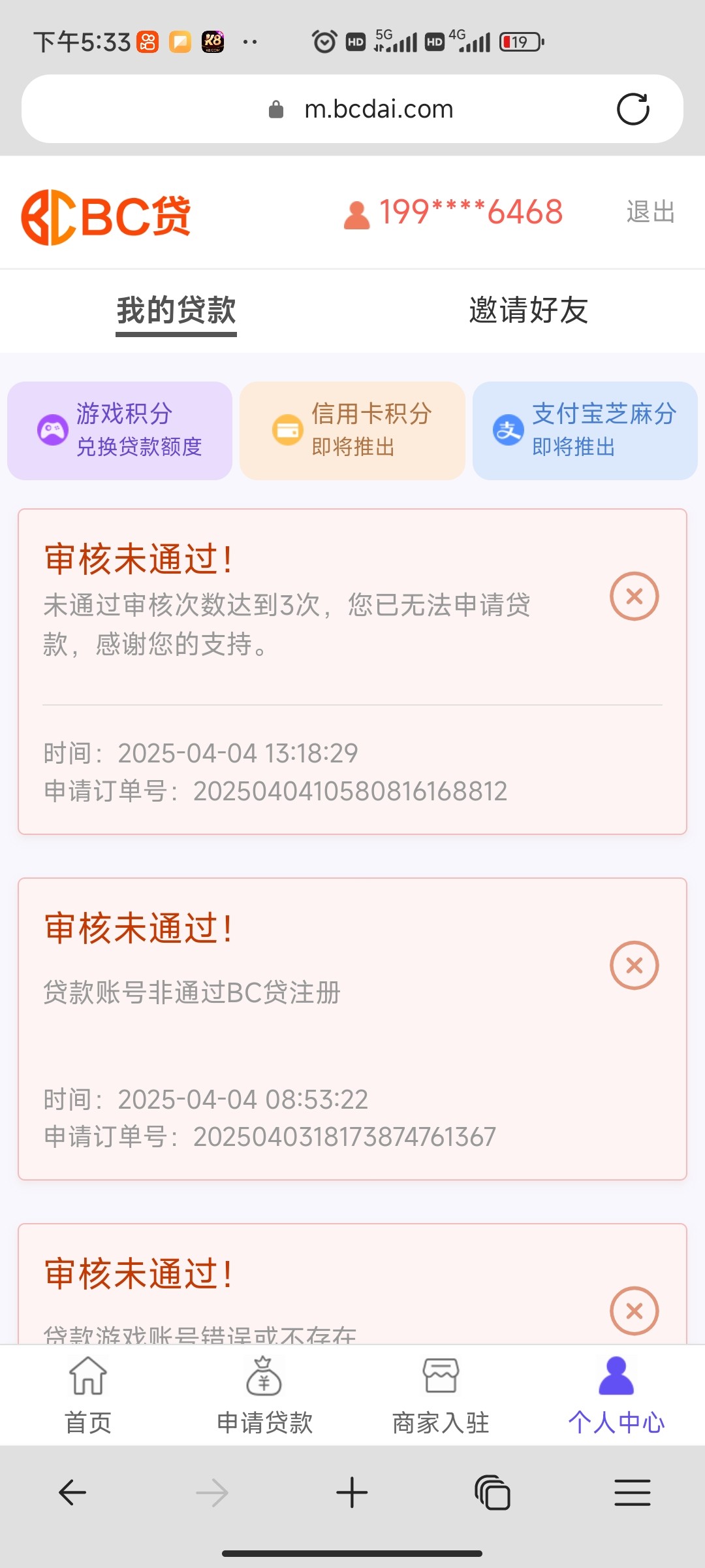 一个手机号只能申请成功一次,三次不成功,就要换手机号码了。我只申请到18U