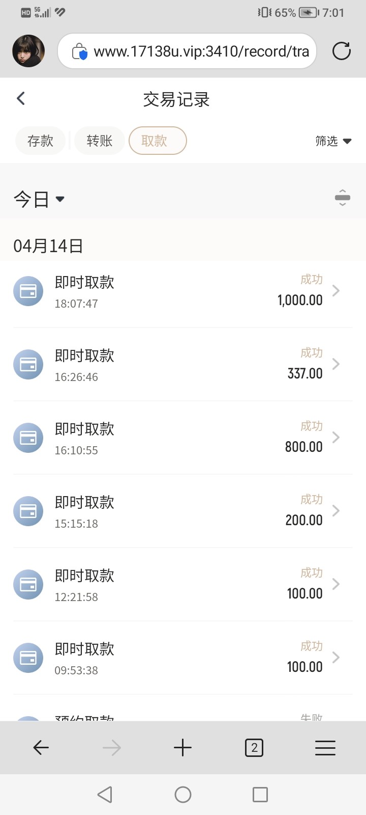 被博系黑怕了,没想到给了,只敢分成几笔小额满满提出来,留了一千一。去年爱游戏大号回归彩金打出来三千和五千,能提,十月国庆回归彩金打到三千六封号黑了,前两天开云参加回归存送打到两千七,提一百也黑了。问了代理封号情况,表示是不经常充值领彩金或者经常充一百打彩金就会被黑,没白嫖出过款或是经常玩的能出款。
