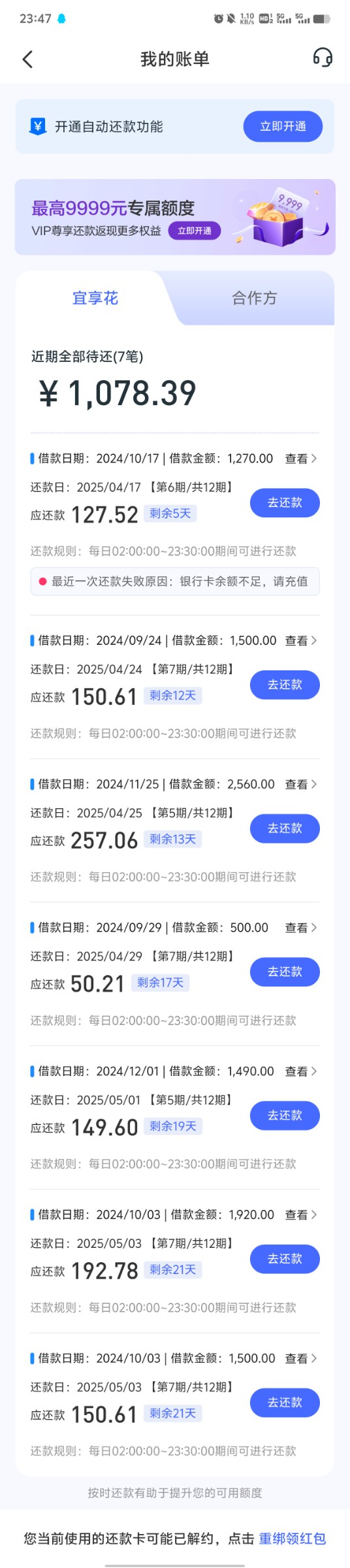 宜享花我欠八千多都半年多了,开始还打电话威胁我,然后现在时不时发短信减息减免福利,