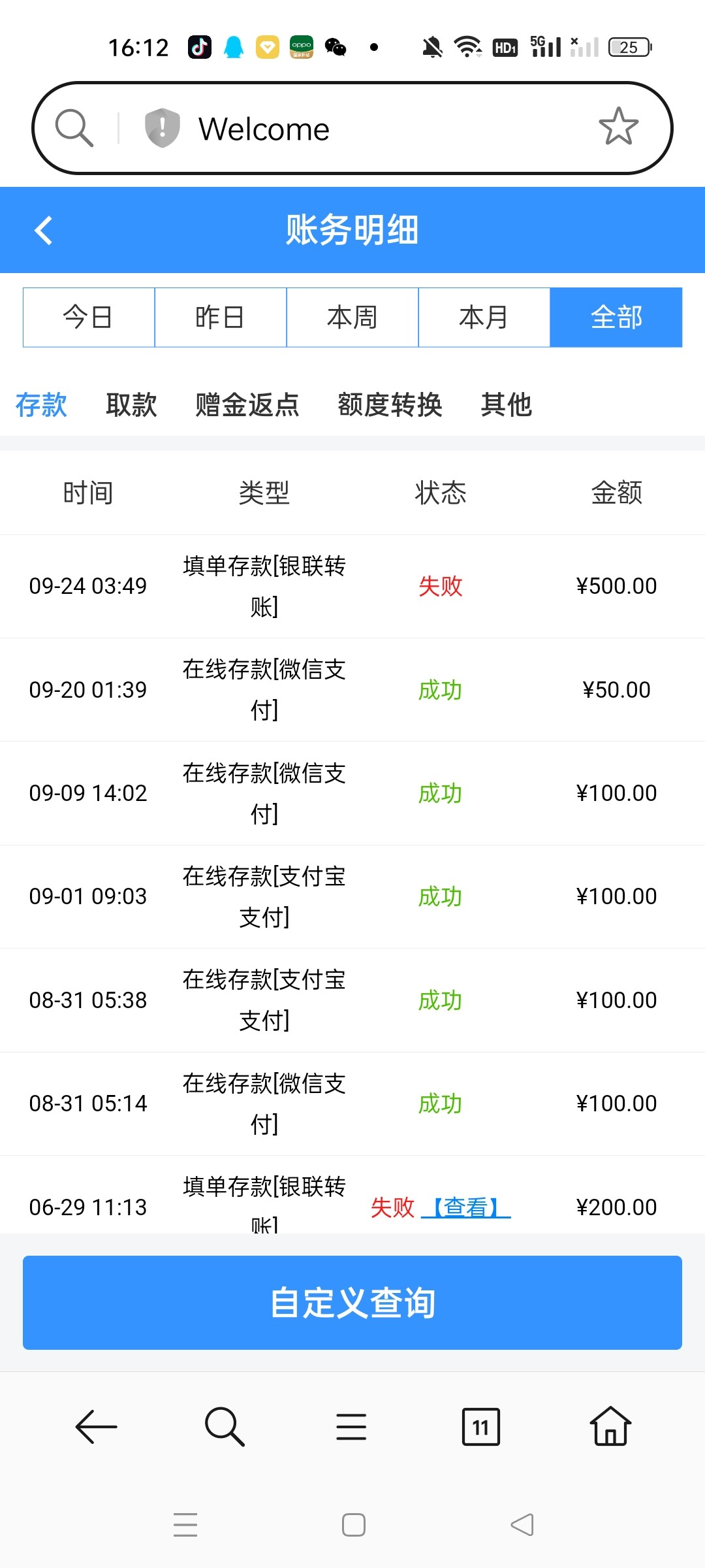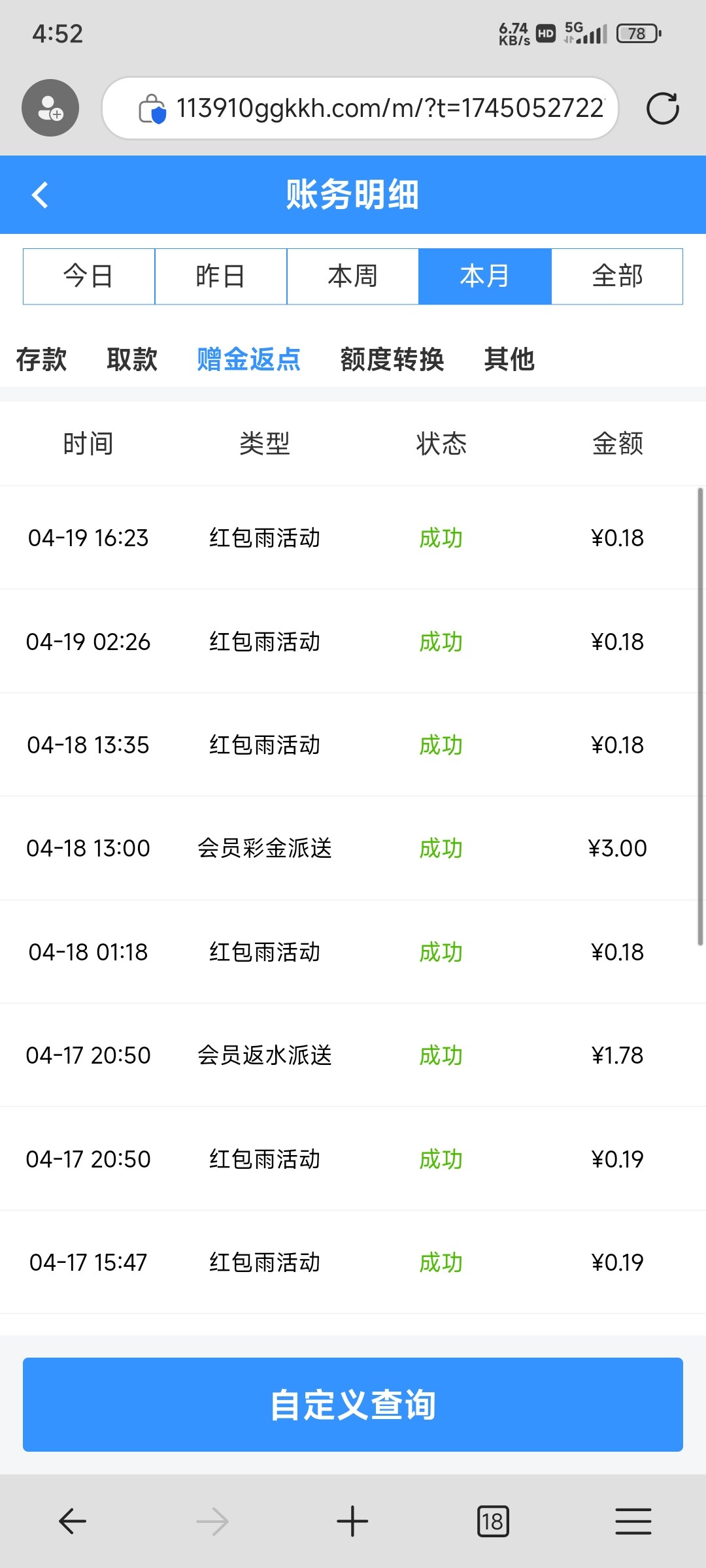 上个月充值过,没有