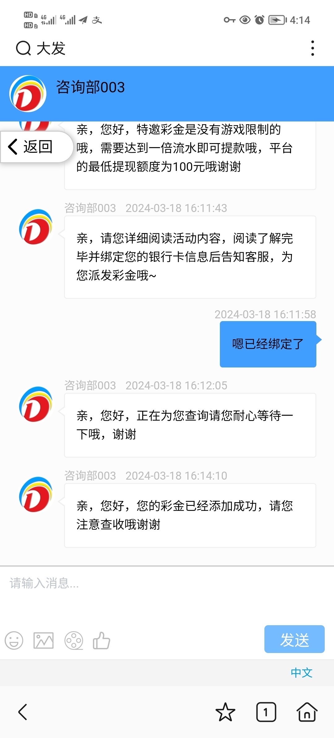 客服说送在绑卡。