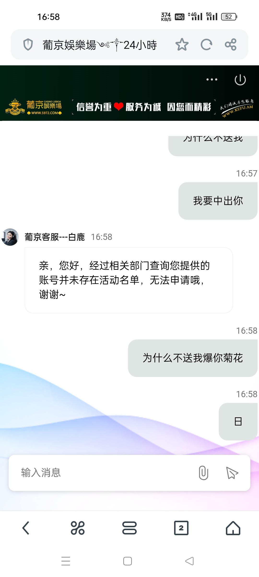 今天无意间看到的,本人送了38 b台子一点水没有打死了,白嫖即可不送的不要中出我 链接 59777.com