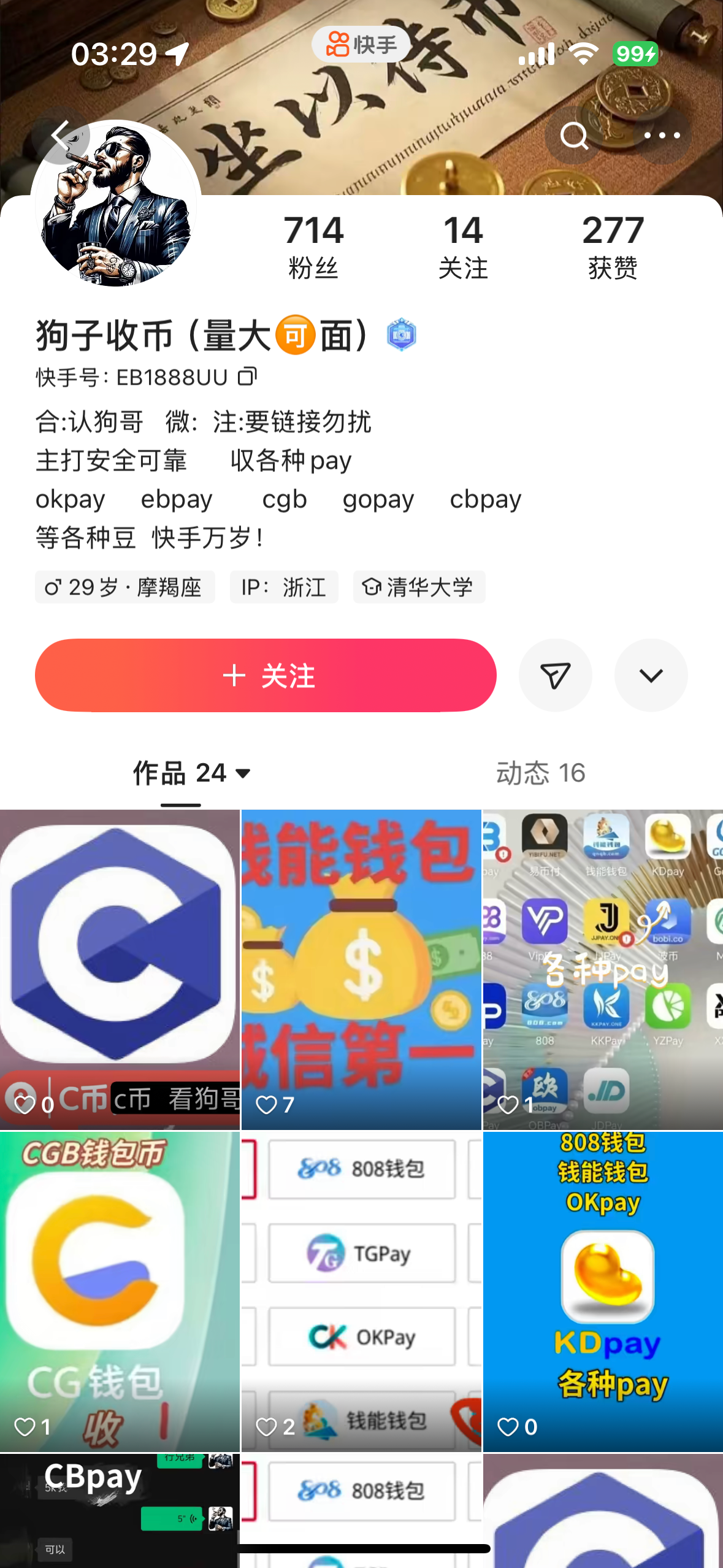 曝光一个快手骗子币商,大哥们千万不要想着快捷找不靠谱的币商放币,都怪那死人C币太难出了,然后找的所谓收币的,故意先转1K试试水,结果一直各种借口拖延说转不了什么的,又不承认自己是骗子,上个月15号拖到现在,在演戏 加了他几个号朋友圈的图还有骗人的文案一直反复用 狗东西