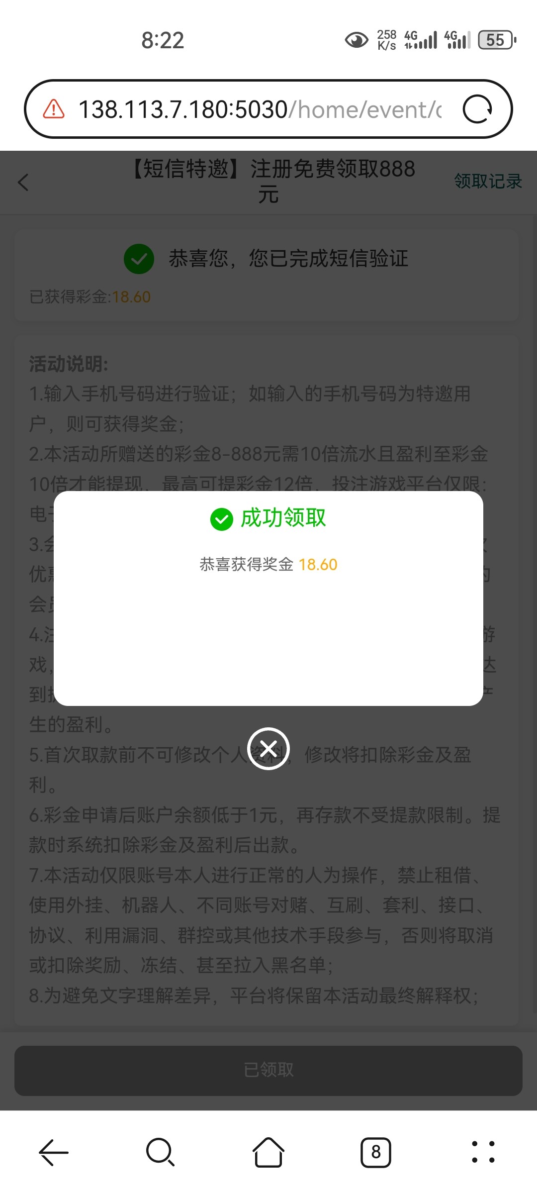 说我的ip已经领取过了