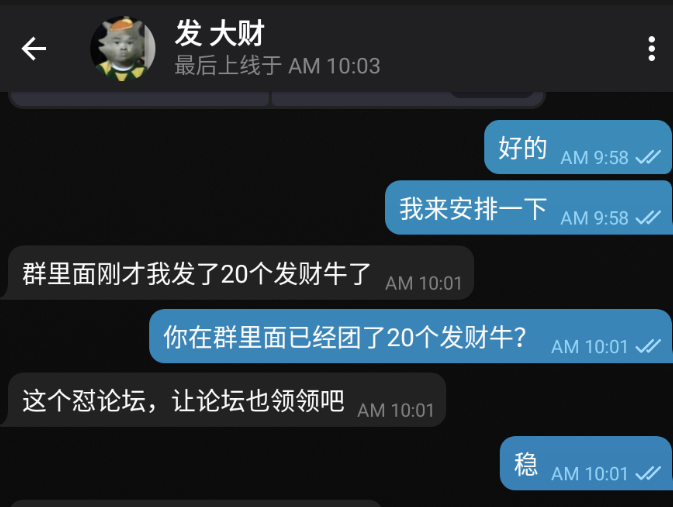 这位发财老哥在POP交流群里面团了20个发财牛