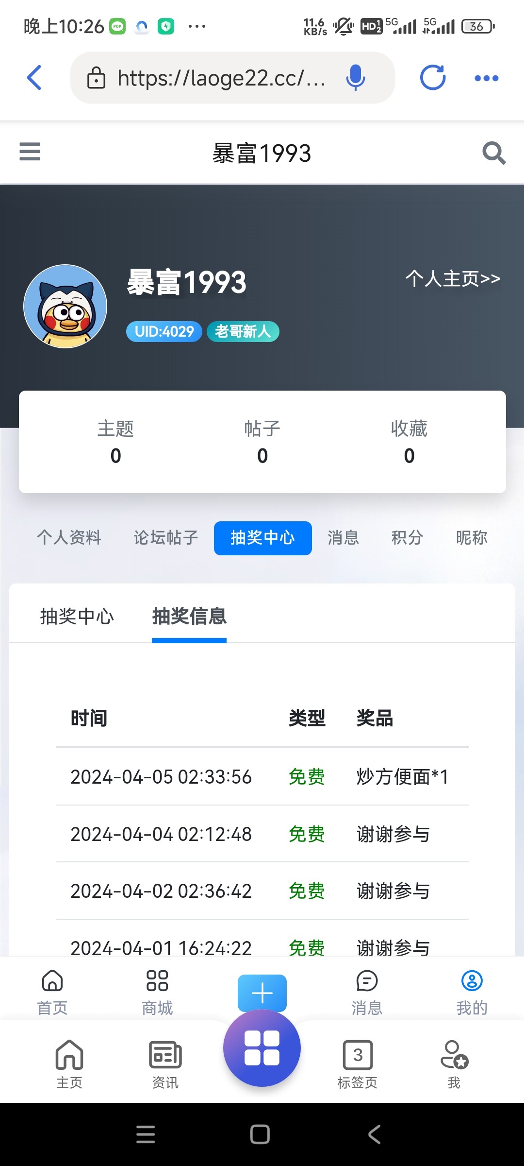 我也抽中了