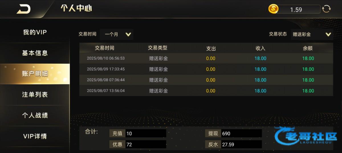 送了我老会员彩金5块钱