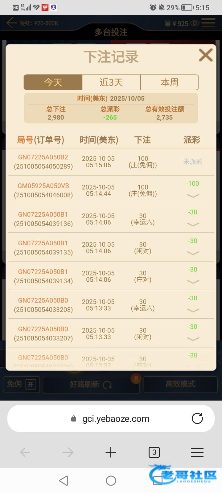 今天打那个闪电百家乐压了三次,对子都中了,吃了300,那个百家乐开对子经常开