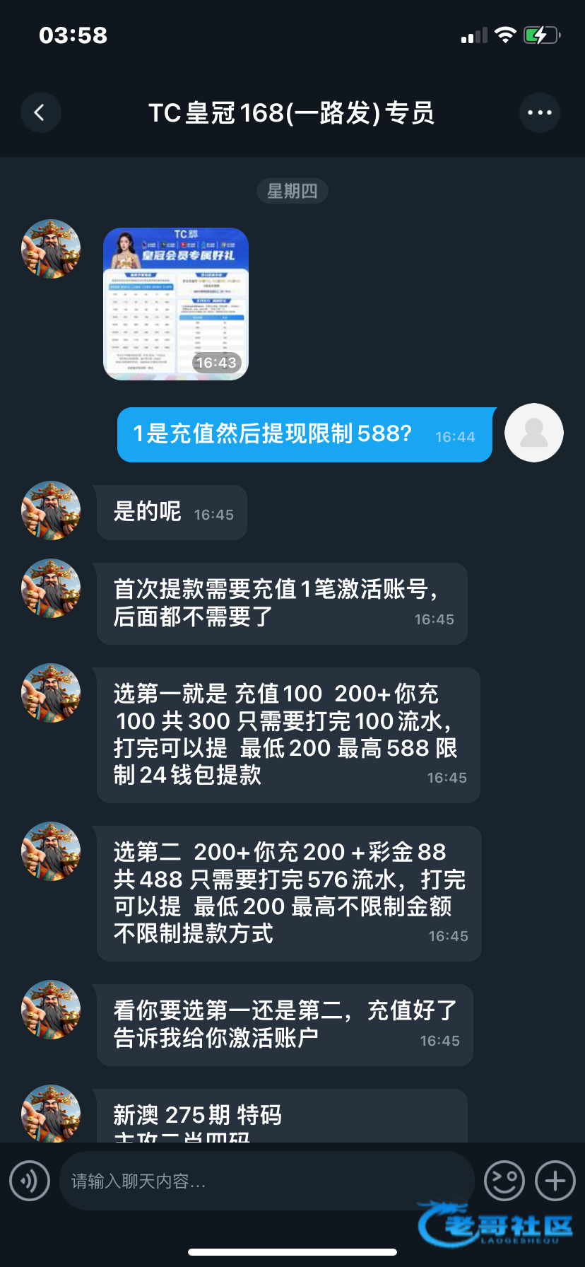 电话打来的看老哥论坛有很多老哥可以出 然后有那个激活条件 我选择了充一百然后打流水就可以提了 但是等我打完流水客服一直以我账号风控为由 一直卡着我 老哥们有没有办法