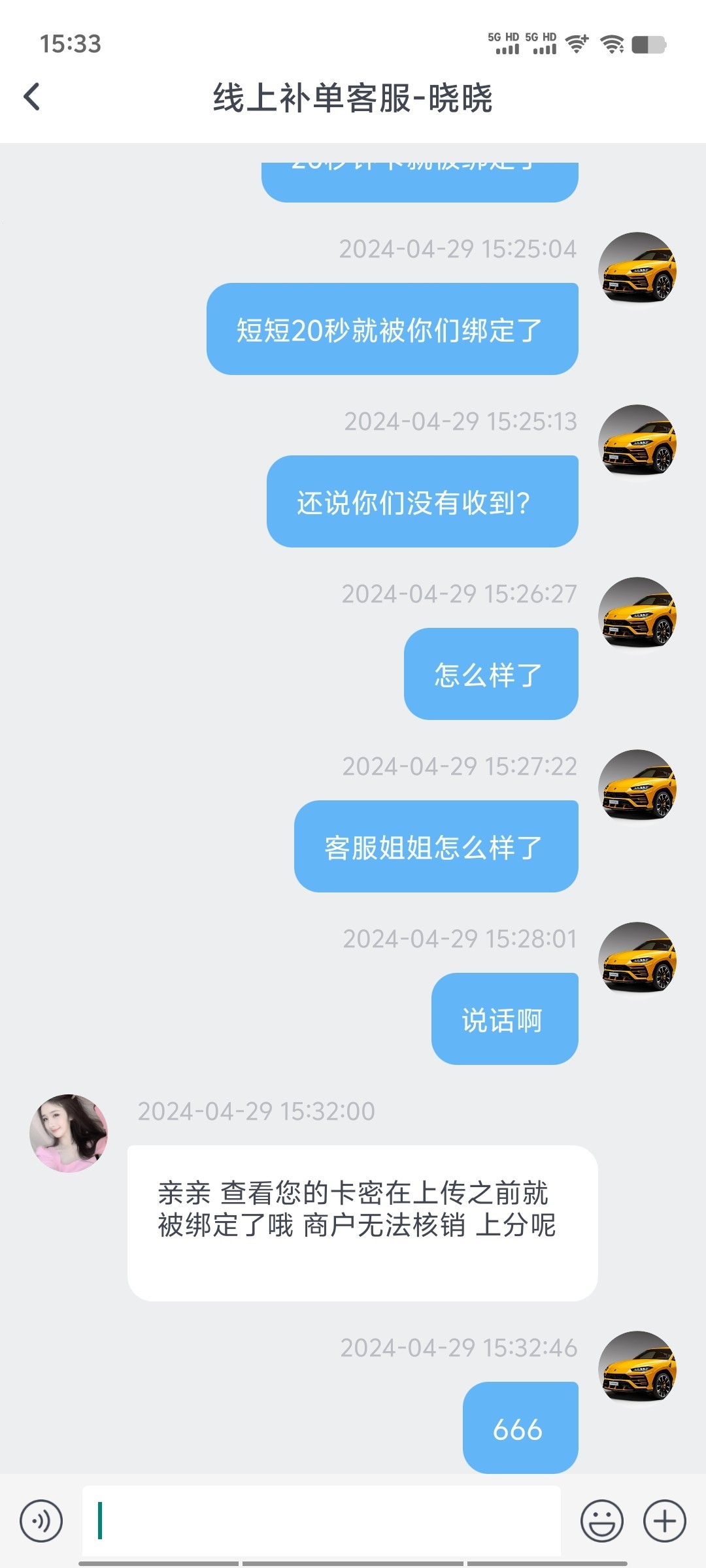 在亿万输了400然后再想充200卡密,结果这200卡密被黑吃了,21秒提交卡密,36秒被绑定了平台说没收到,这是黑吃了吧,然后再b66又输了200,最后再问鼎打回来了,不团了刚回血,兄弟们卡密充值小心点,小心被黑吃了挺难受的