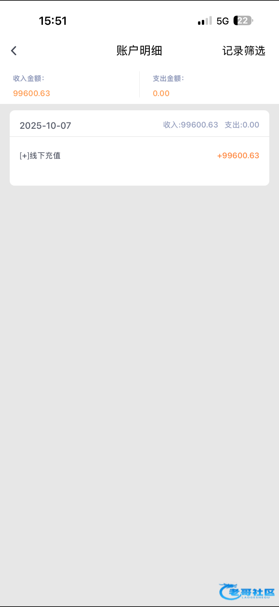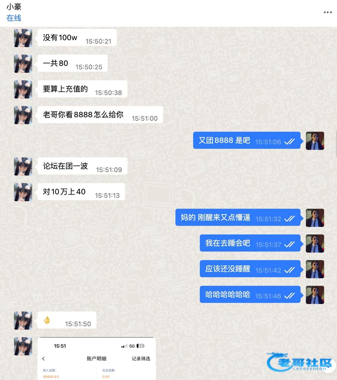 昨天50w 到账后今天充值了 9.9w