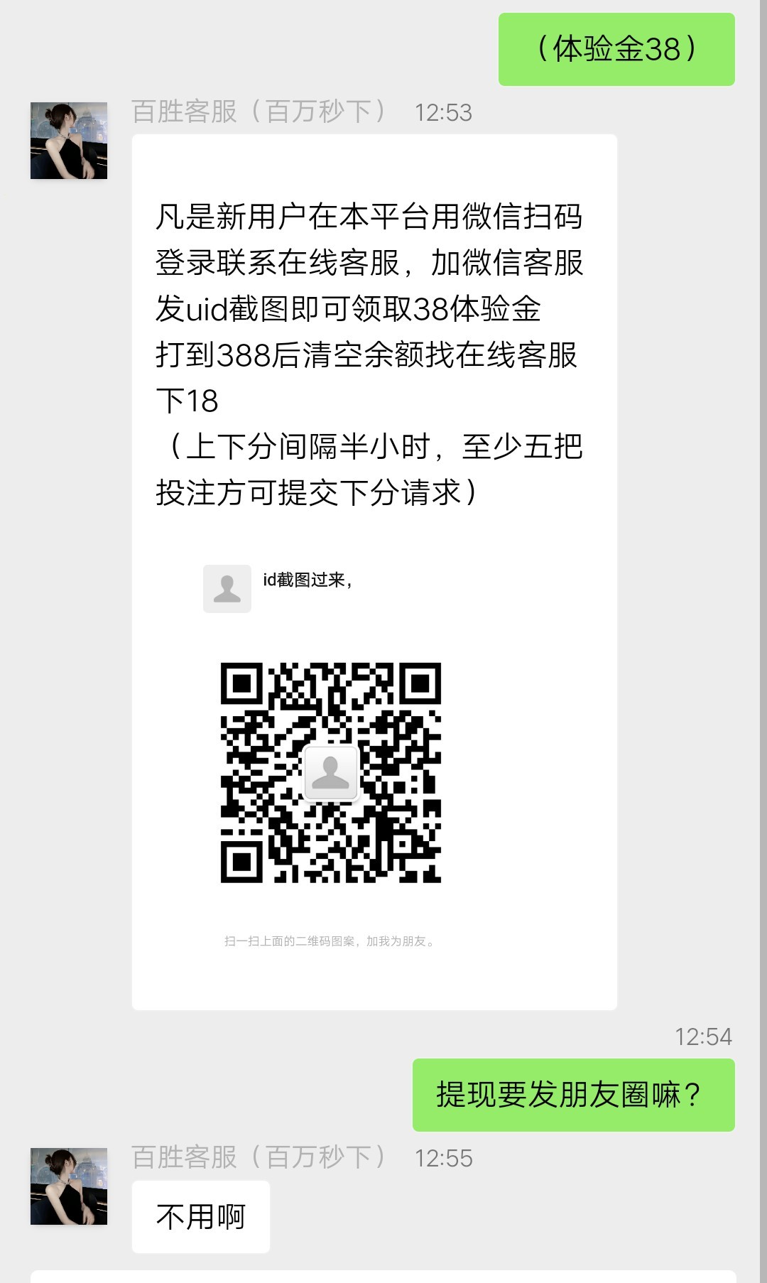 扫码找在线客服申请,提现不用发朋友圈