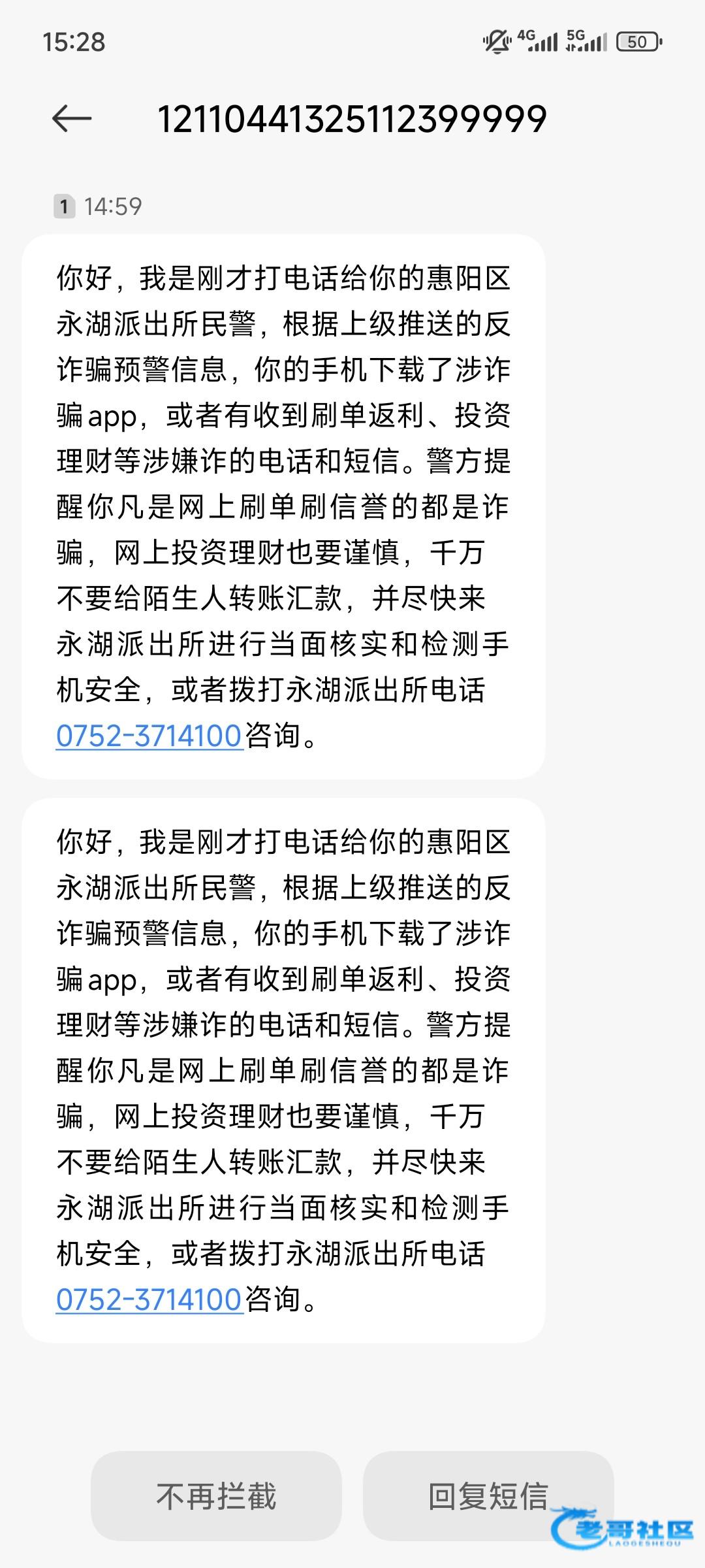 老哥们,今天反炸给我打电话被我拦截了,后面给我发短信要我去派出所。这种不去会有事吗