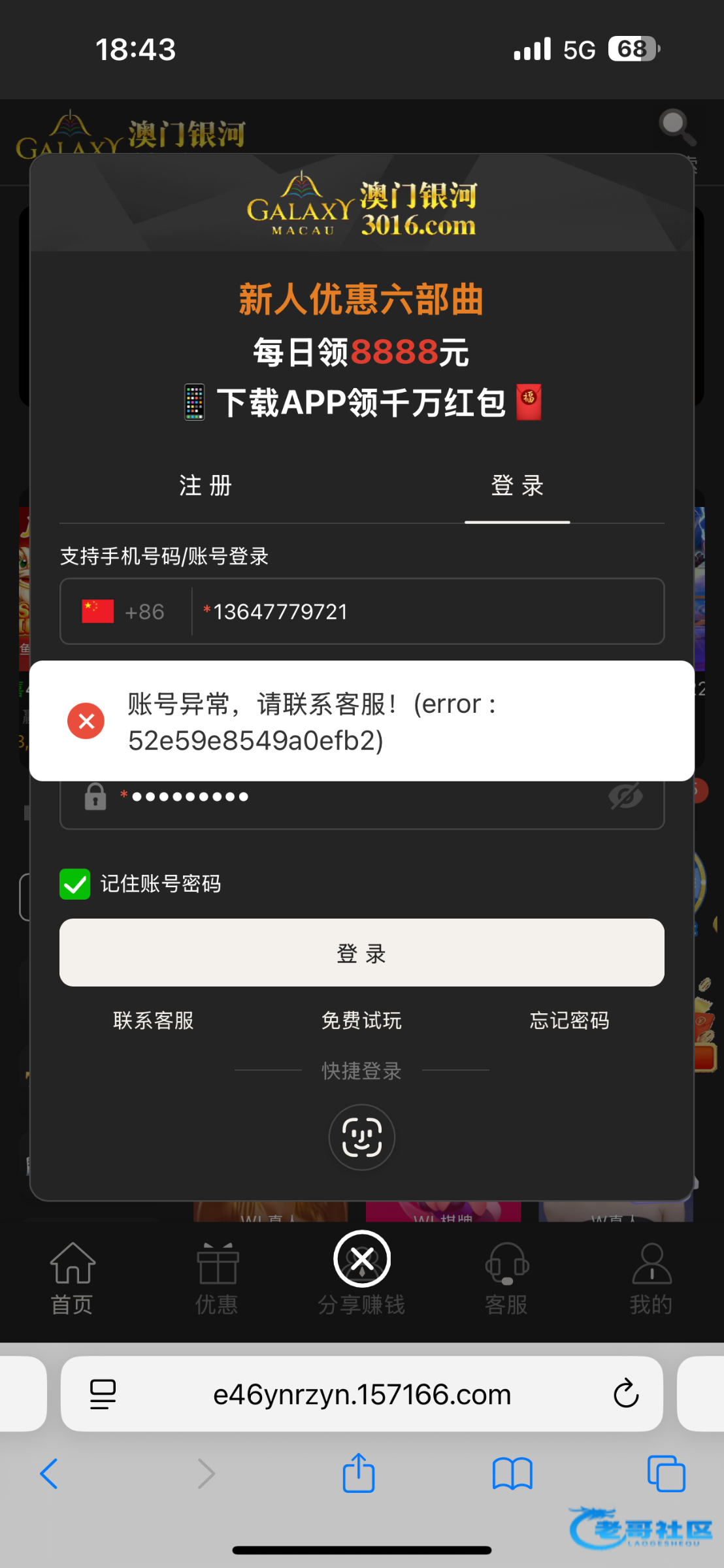 特码的登录账号异常。呵呵