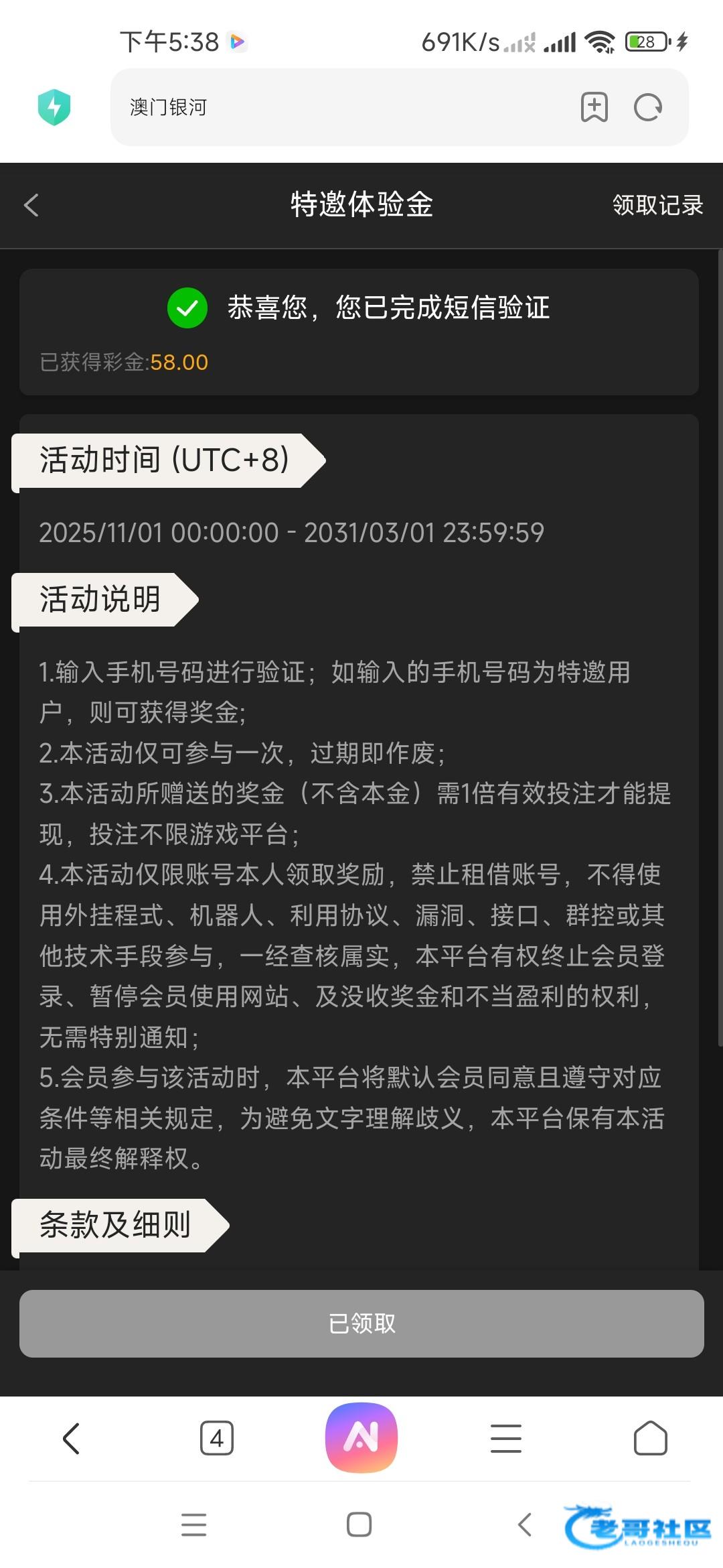 羞答答的玫瑰 ▶ 羞答答的玫瑰 还有一个不能领取了 领取了一个号 充值100提了360 4月前