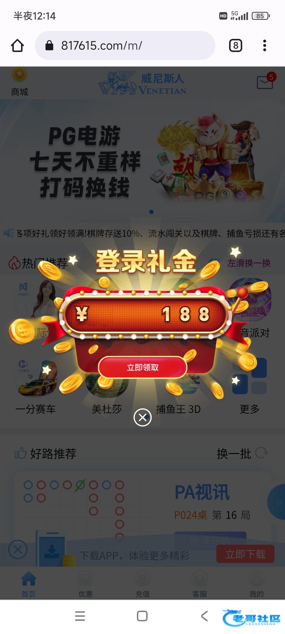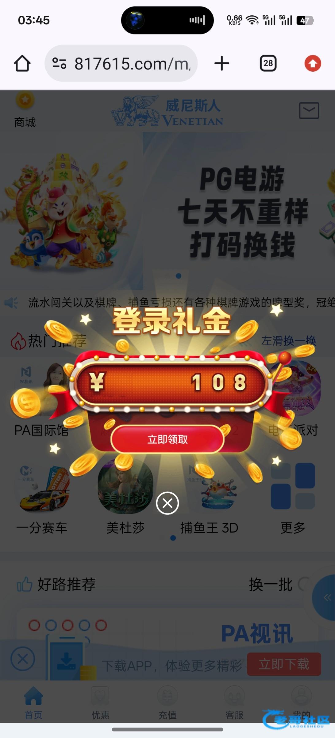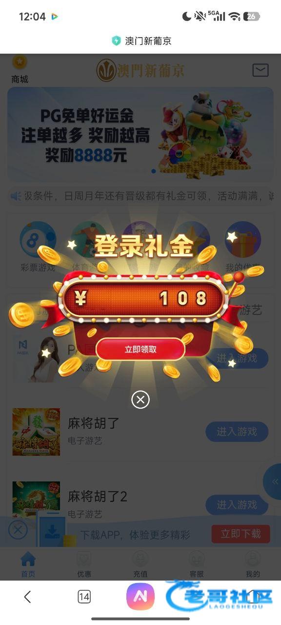 新葡京的9月份才黑过,原来是叫7216.app 论坛搜索一下就看到了,也是登录给了彩金,出款要求充值,充值后提款就说活跃不足,然后要打15倍流水,15倍流水打到了说刻意刷流水玩捕鱼电子,找谁说理去?
