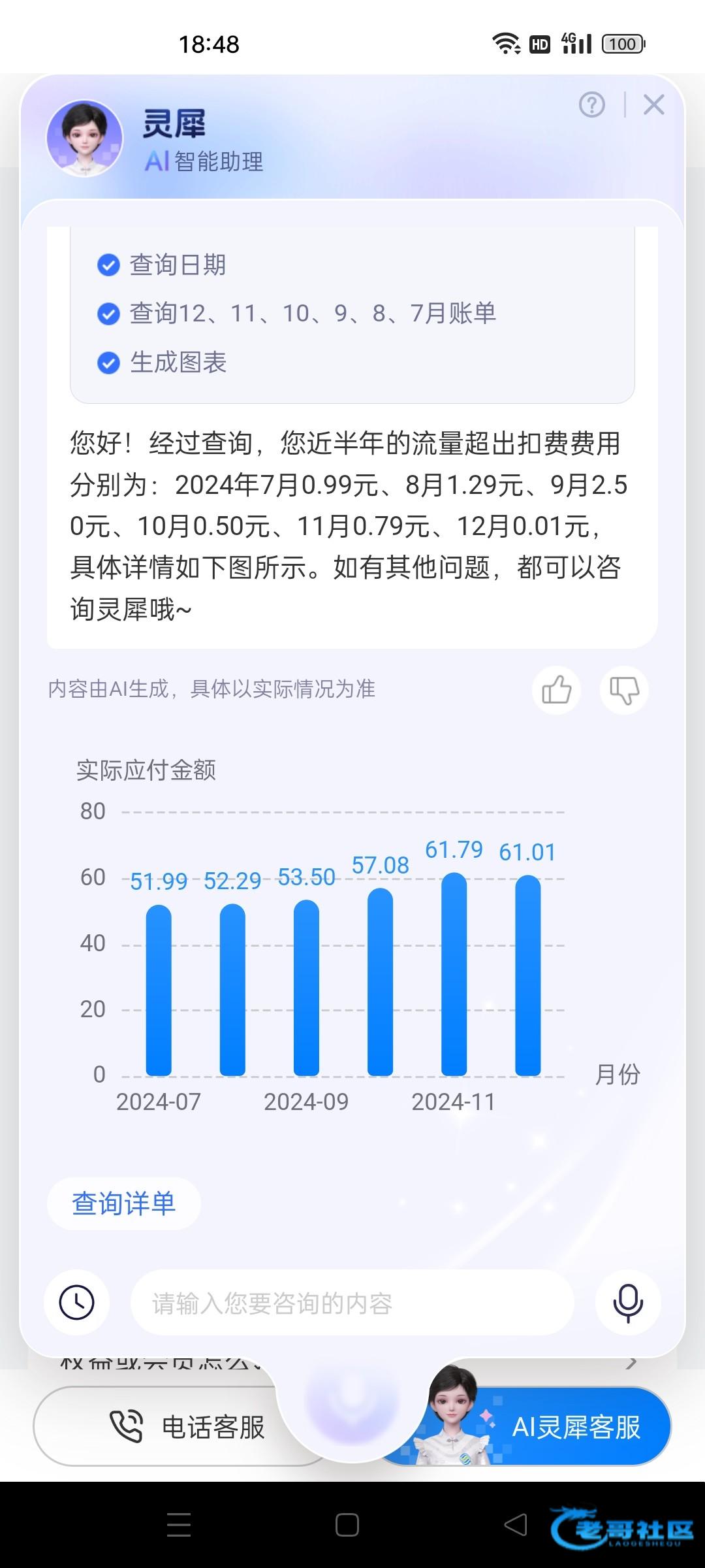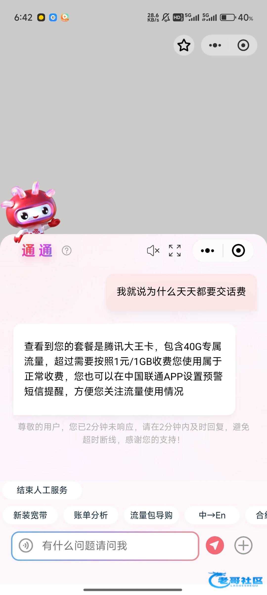我就问问移动客服查超出流量扣费,没让他退却自己退了,挂壁没钱了用60话费兑换星巴克换了45.8