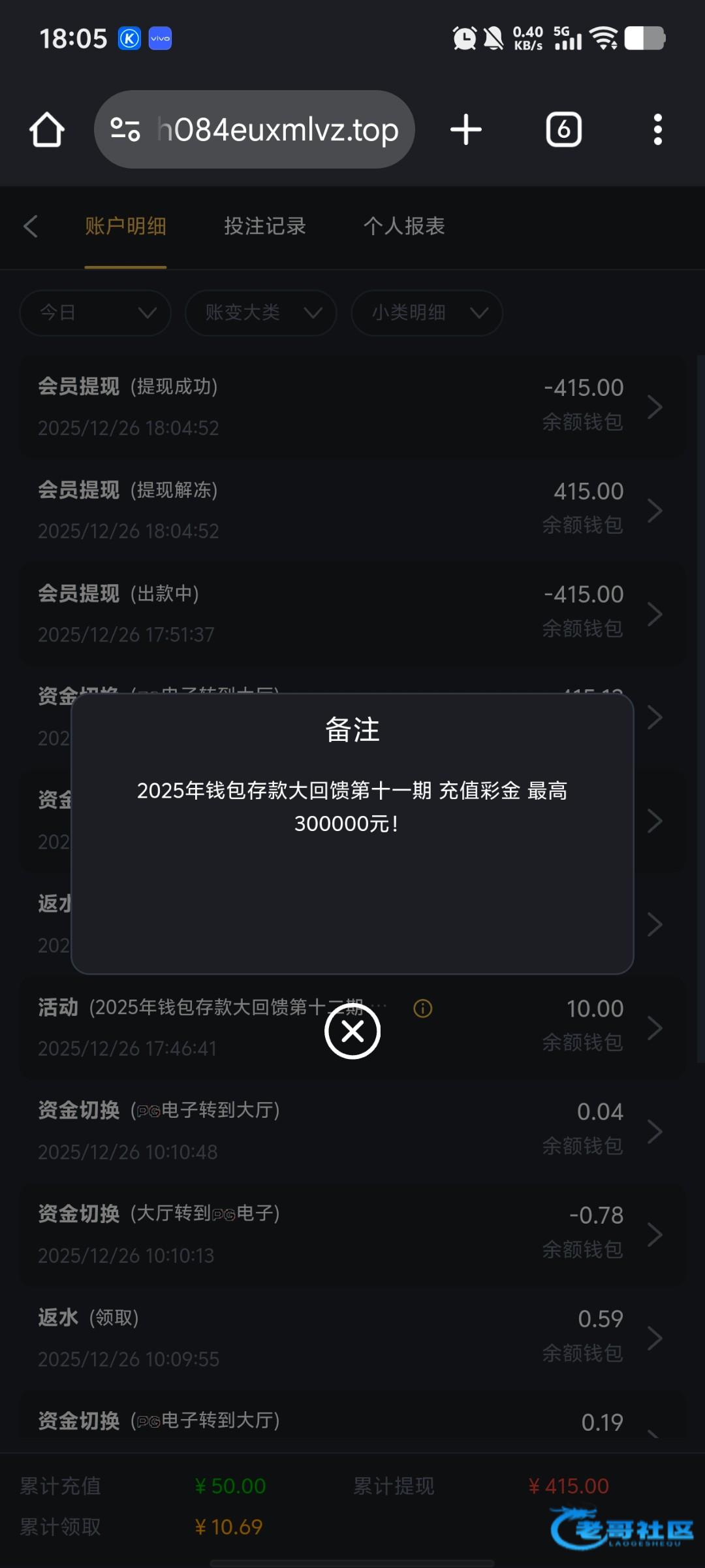 2006.vip 有个历史钱包充值 大家去看一下 我10块钱 并且成功出款。