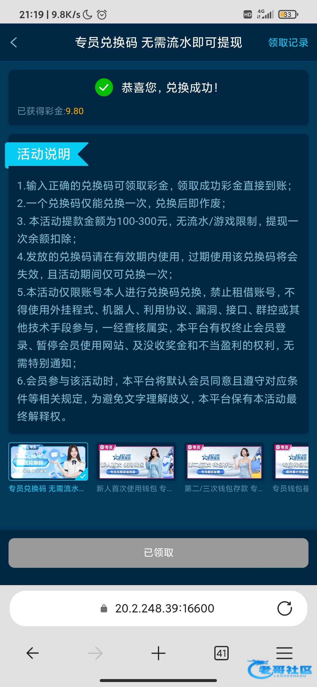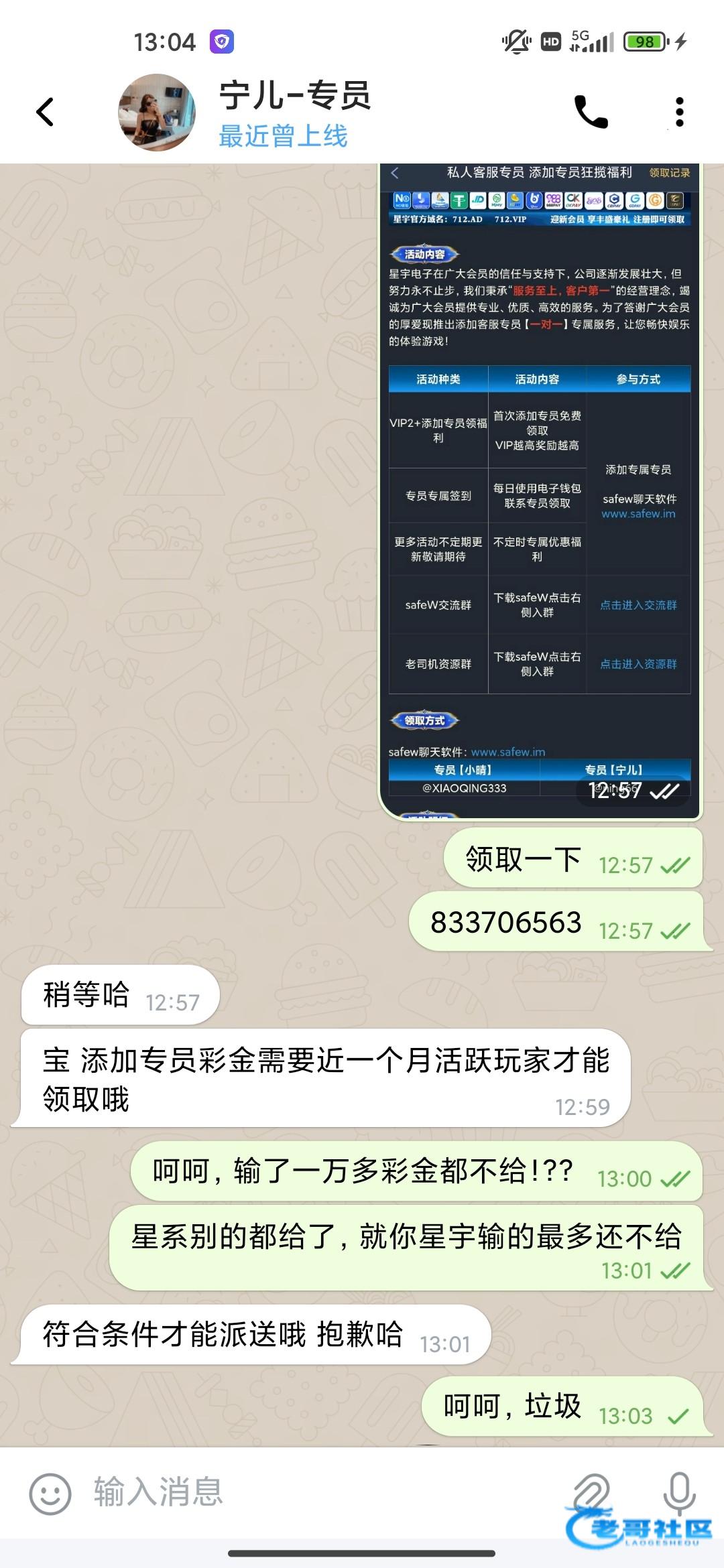 星系的新出了个专员兑换码,直接去safew找专员说领取专员兑换码就可以了,我几个号都是好久没充值的都领到了