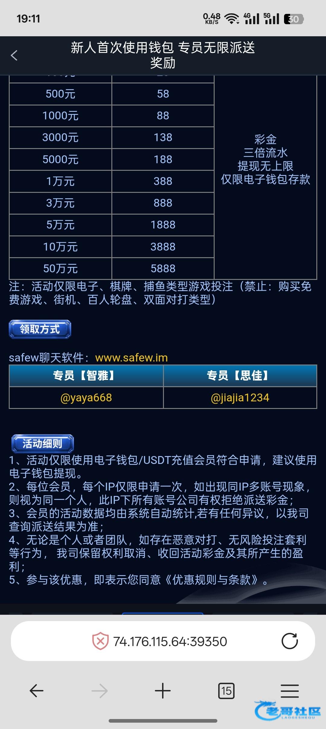 专员在你自己玩的平台找到这个新人使用钱包,点进去往下滑就看到了