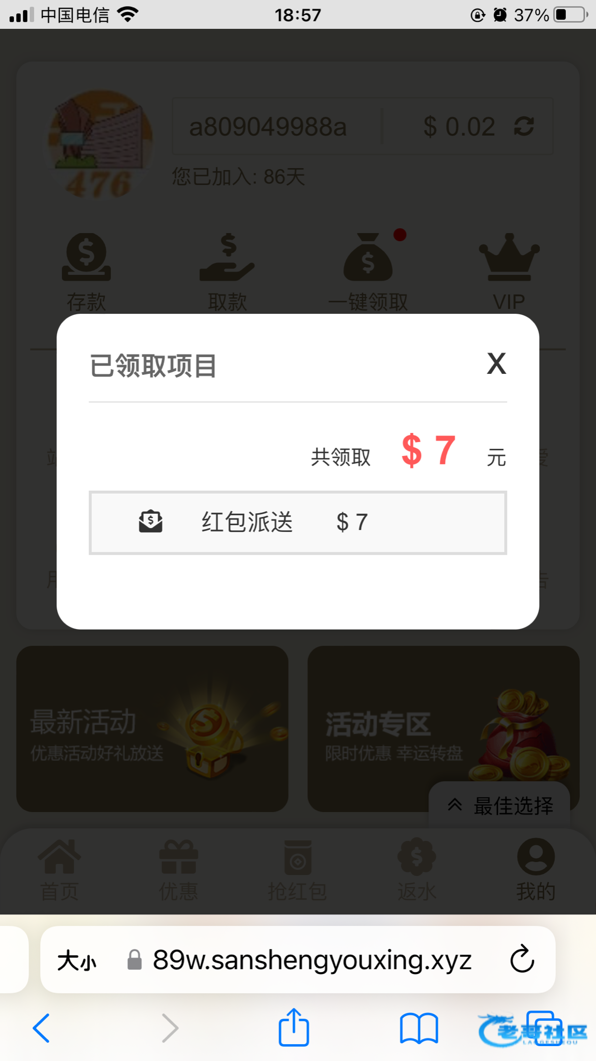 476.com 登录直接弹出来了 最近充值过 没充过的应该没有 最低10块提